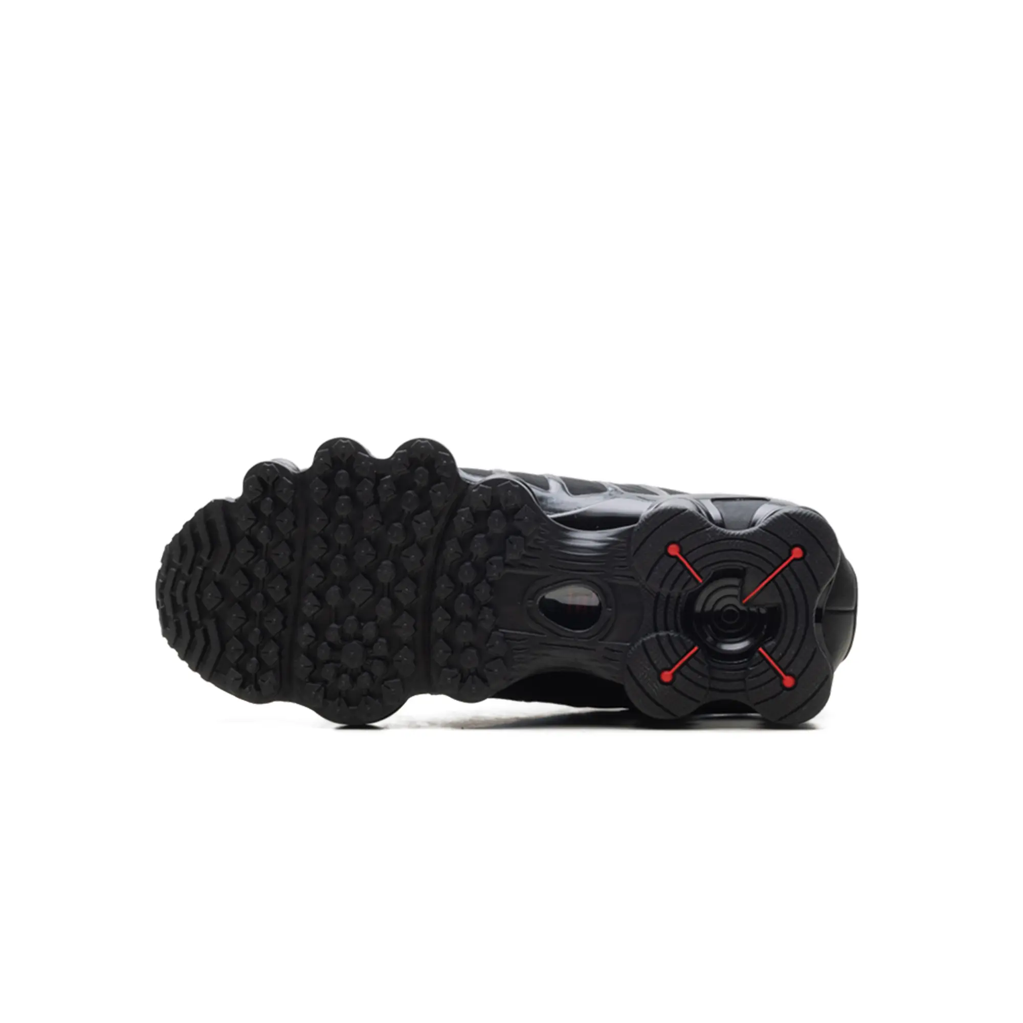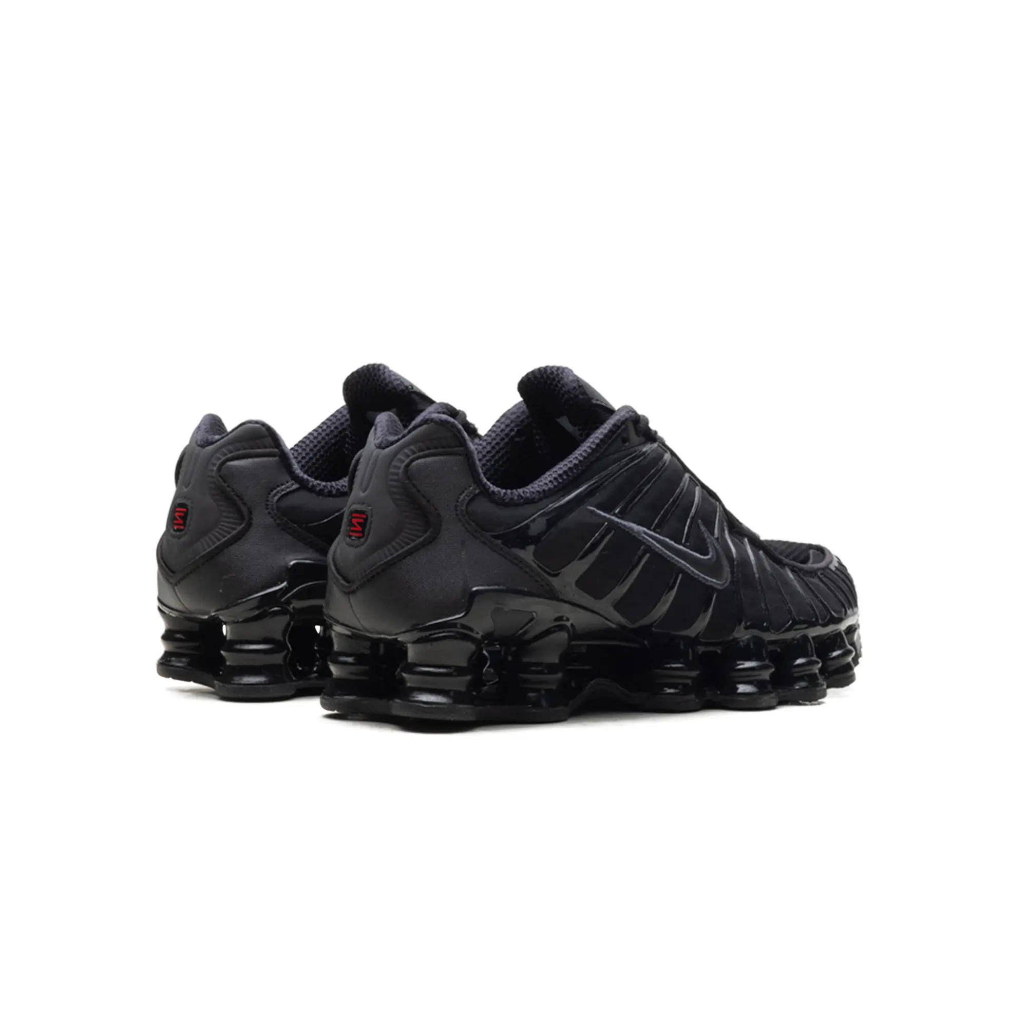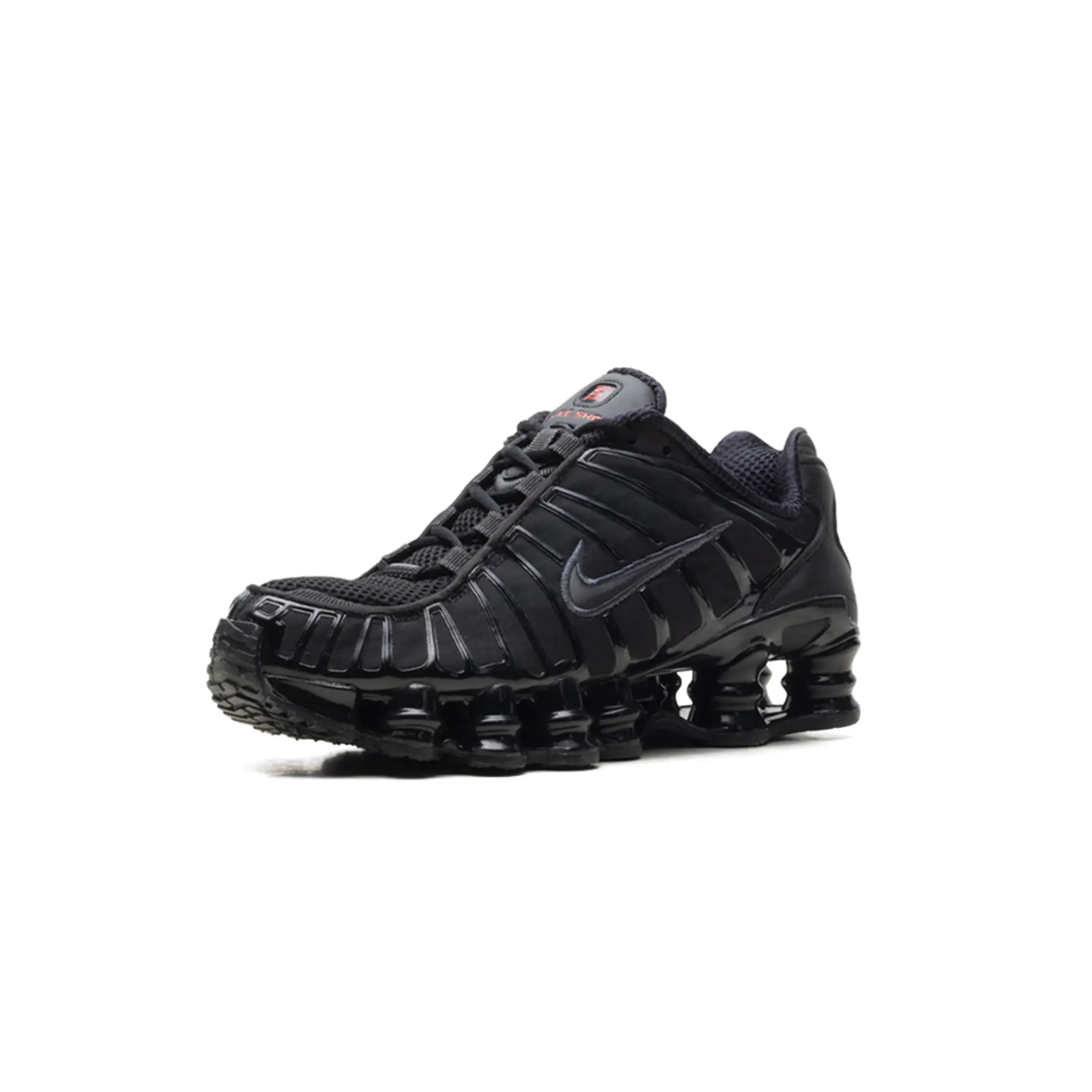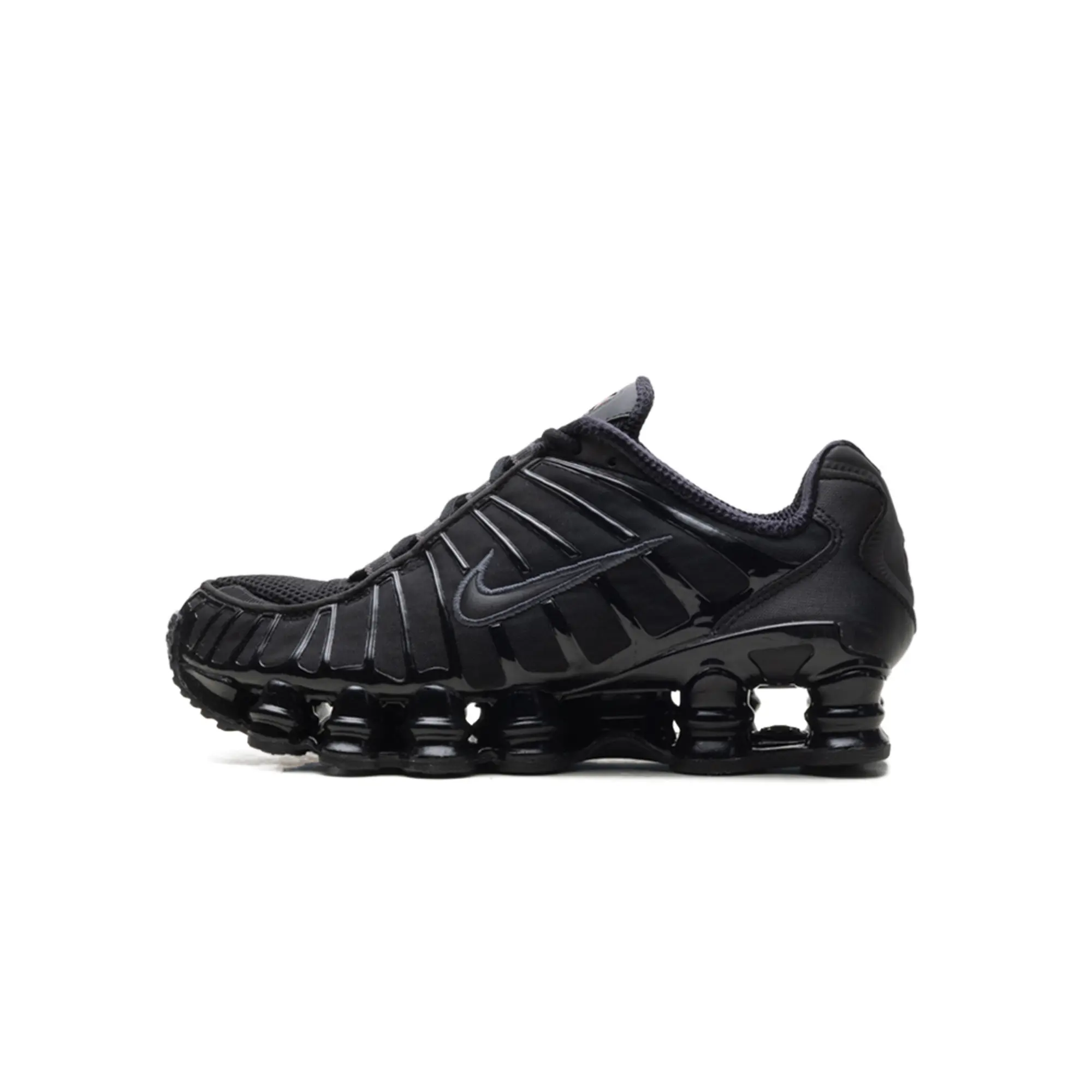 The Nike Shox TL "Triple Black" delivers a clinical, high-status execution of the 2003 mechanical masterpiece, masterfully blending Y2K "Alpha Project" heritage with a radical, obsidian technicality. This iteration features a premium landscape of breathable metallic mesh and synthetic textile, providing a stealthy, multi-dimensional foundation for the model’s complex profile. The design is defined by its explosive, industrial strike, utilizing specialized glossy TPU cage overlays that wrap the upper for a sharp, bio-mechanical aesthetic. Grounded by a full-length Nike Shox platform featuring sixteen high-octane piston columns for elite impact absorption and finished with a tonal embroidered Swoosh, this release successfully pairs the TL’s aggressive DNA with a sophisticated, "triple-black" aesthetic suitable for any high-heat tech rotation.