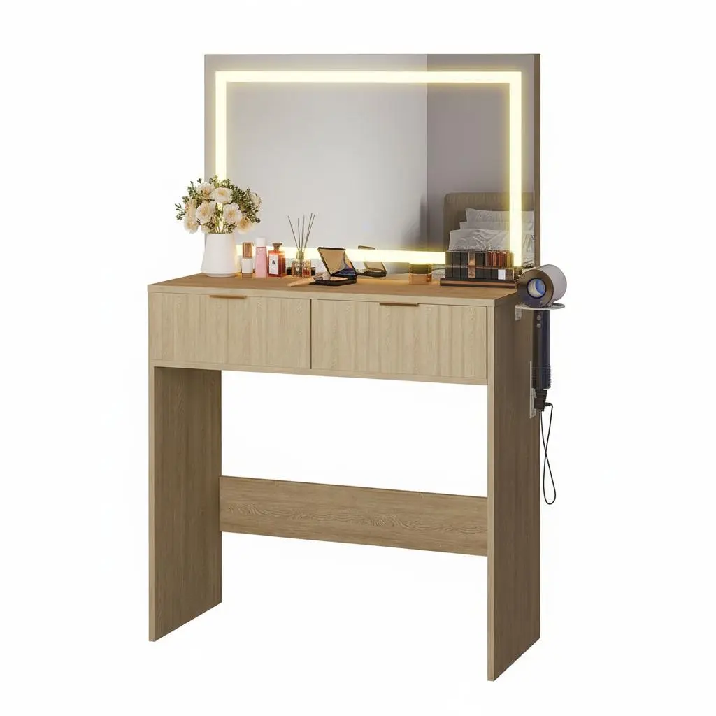 Transform your everyday care routine into a luxurious experience with this integrated makeup vanity desk. Perfect for women who value both style and practicality, it also makes a thoughtful gift for loved ones. Order now and create your own elegant, well-lit beauty station.