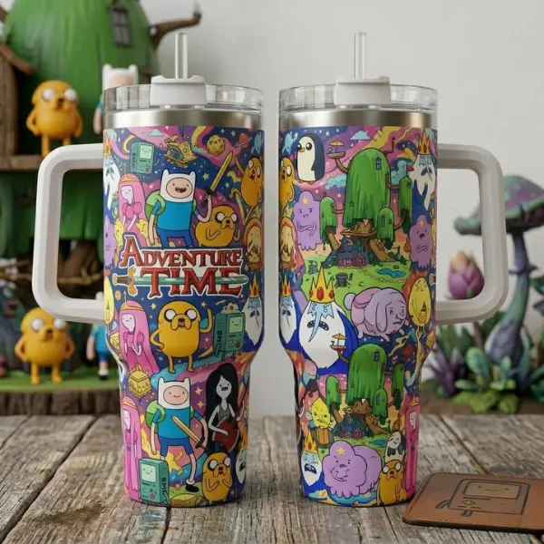 Adventure Time Finn & Jake Tumbler 20oz/40oz, Insulated Stainless Steel Cup with Handle & Straw, Leakproof Cartoon Fan GiftAdventure Time Finn & Jake Tumbler 20oz/40oz, Insulated Stainless Steel Cup with Handle & Straw, Leakproof Cartoon Fan Gift