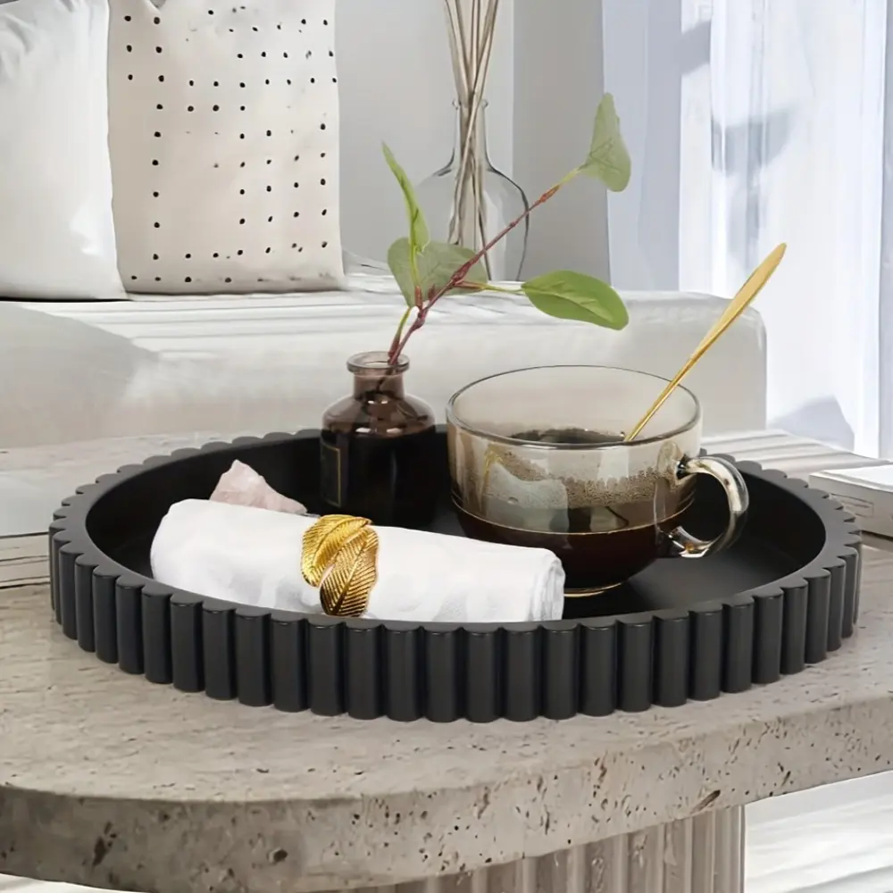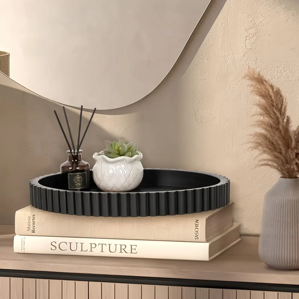 One modern silicone round tray for coffee table, one jewelry and cosmetics storage tray with wavy decorative design, easy to stylize, very suitable for home decoration, perfume display, and fashion center or coffee bar decoration. (Not for food contact)