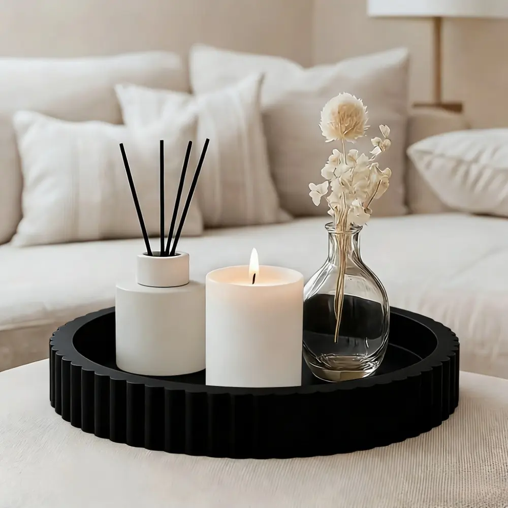 ·Versatile Design: This silicone round tray is perfect for coffee tables, jewelry, and cosmetics storage. Its wavy decorative design adds a stylish touch to any space. Ideal for home decoration, perfume display, and fashion centers. Not for food contact.