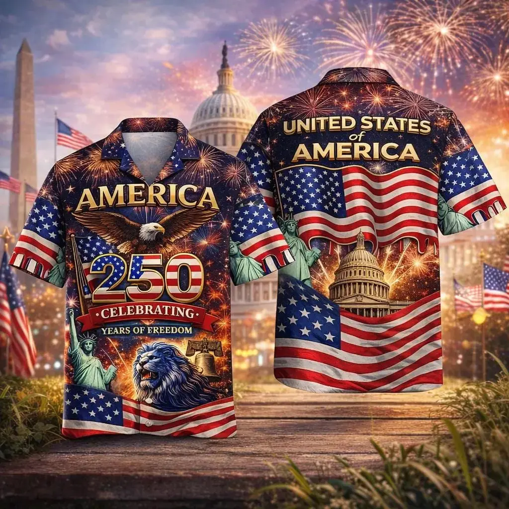 USA 250th Anniversary Hawaiian Shirt, Celebrating 250 Years Of Freedom Patriotic Shirt, Independence Day 4th of July Gift