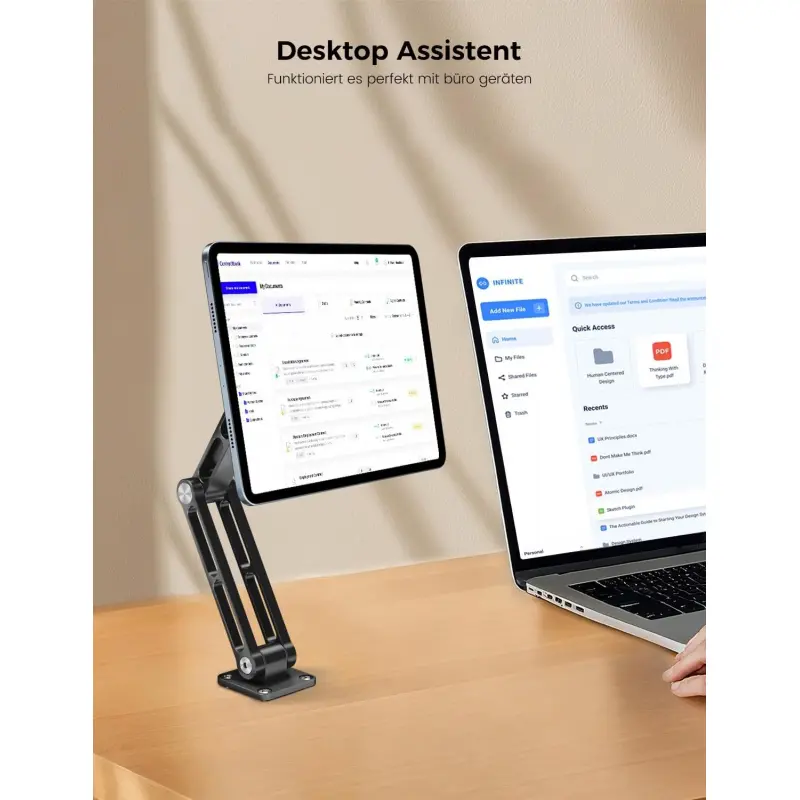 Cooper TabStand - Height Adjustable iPad/Tablet/ Portable Monitor Holder, metal/aluminium design, Fits Up to 17" Devices - Diagonal, 360° Rotate & Tilt, 4.4lb Holding Strength, Portable for iPad Pro, Mini, Air, Smartphone Adjustable Multi-Device Stand