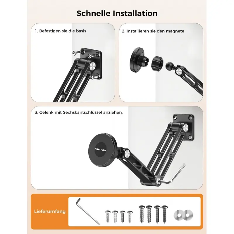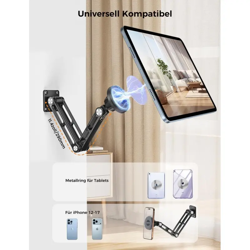 OHLPRO Tablet Wall Mount Magnetic Aluminium 360 ° Rotating iPad Wall Mount Extendable & Foldable Tablet Holder Wall for Office Kitchen Gym, Universal All Phones & Tablets