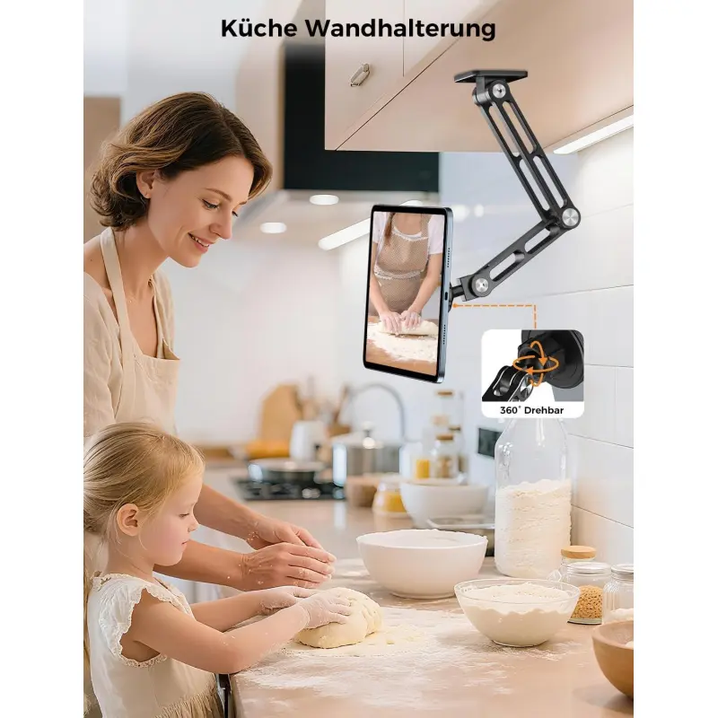 OHLPRO Tablet Wall Mount Holder for iPad, Upgrade 360° Adjustable Swivel No-Drill 3M Adhesive Stand for Kitchen Smooth Surface Wall, Fit for 5-13" Phones iPads Samsung Tab Fire HD & More Devices