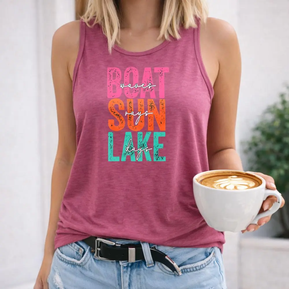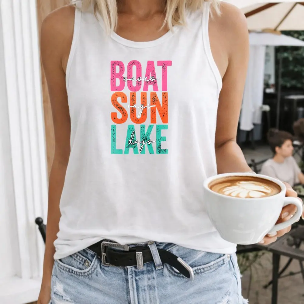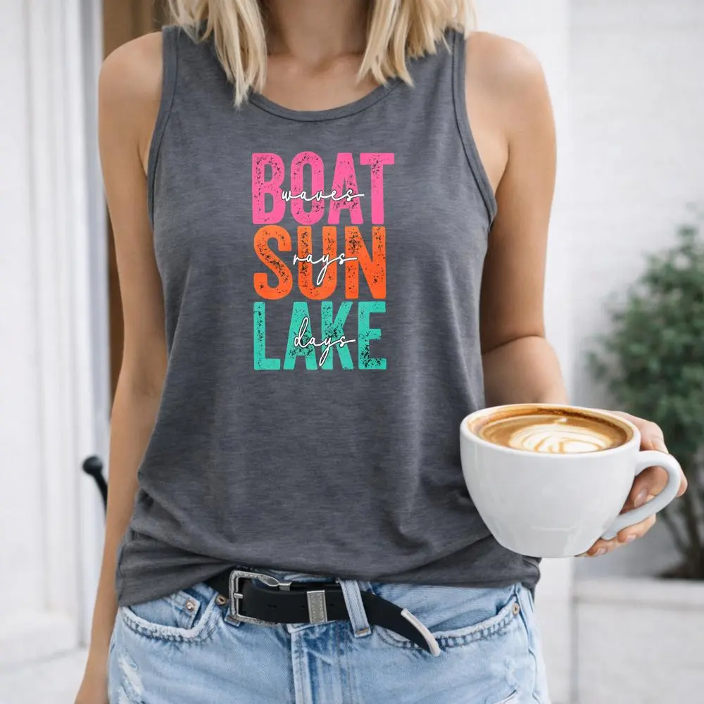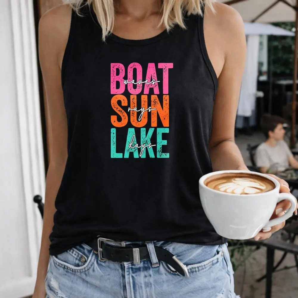 Lake Life Funny Graphic Women's Sleeveless Racerback Tank Top Casual Summer Vacation Shirt Lightweight Comfortable Fabric Machine Washable Perfect For Spring Summer Travel Beach Outdoor Activities And Relaxed Casual Wear - Womenswear