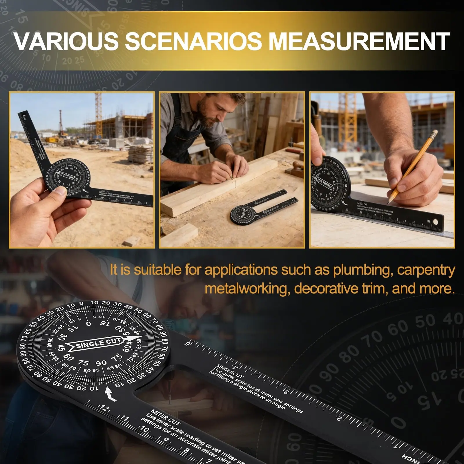 ·【Durable Construction】Built with solid aluminum alloy, this protractor angle tool resists bending and wear. Designed to withstand daily handling by carpenters, builders, and DIYers, it fits among professional hand tools and herramientas de construcción on any worksite