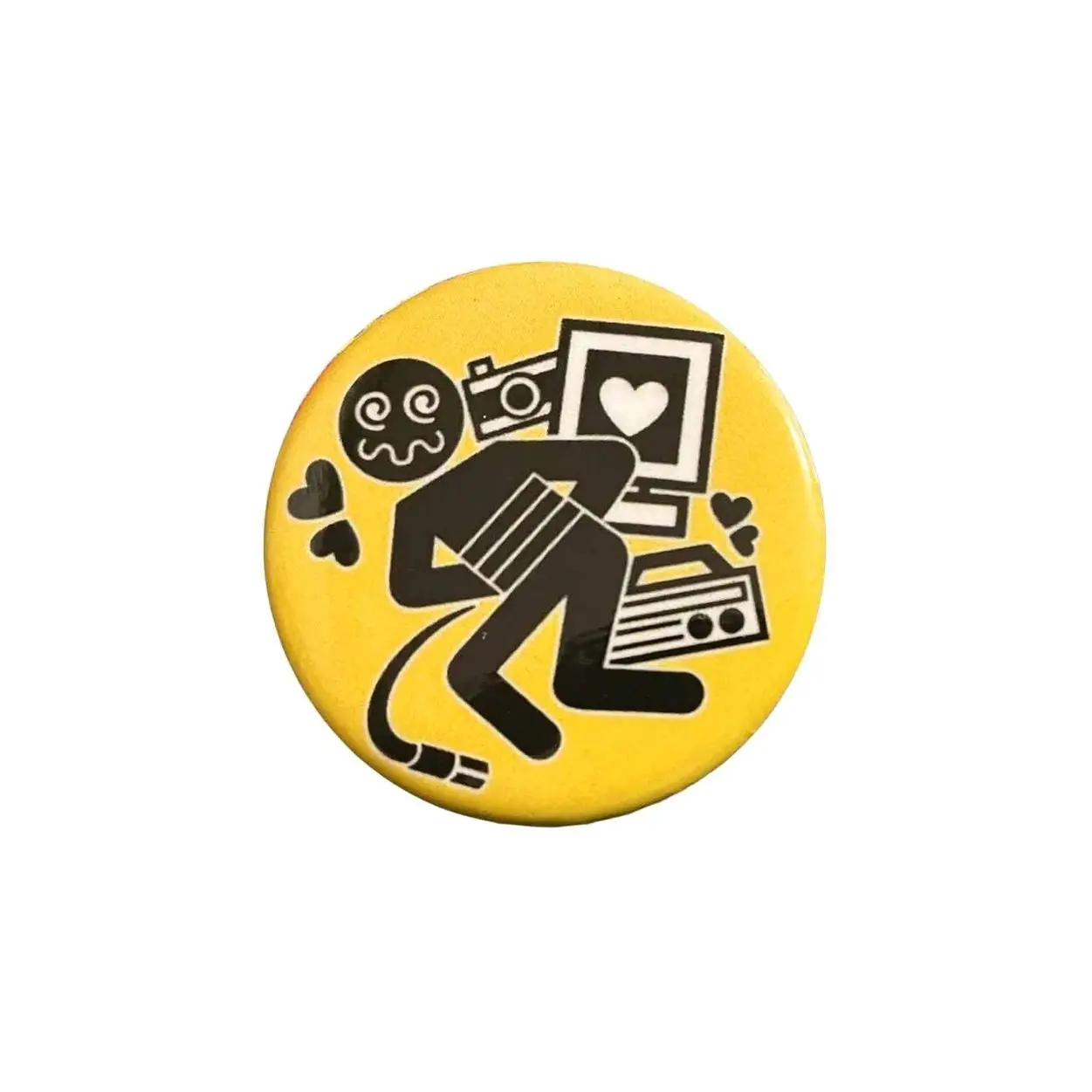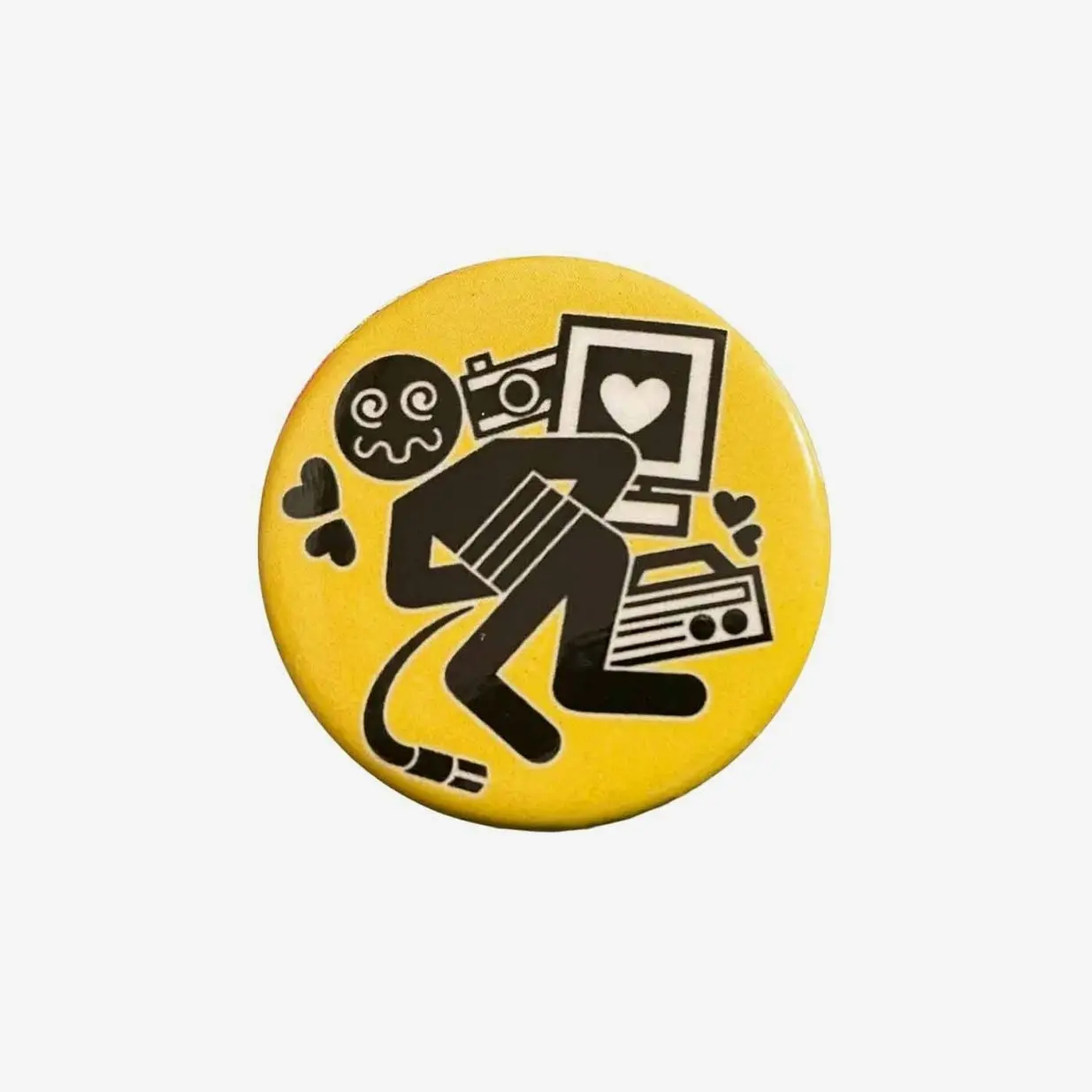 2 Ops Yellow & Red Objectum Pin Buttons, LIMITED Funny Pin Gifts for Friends