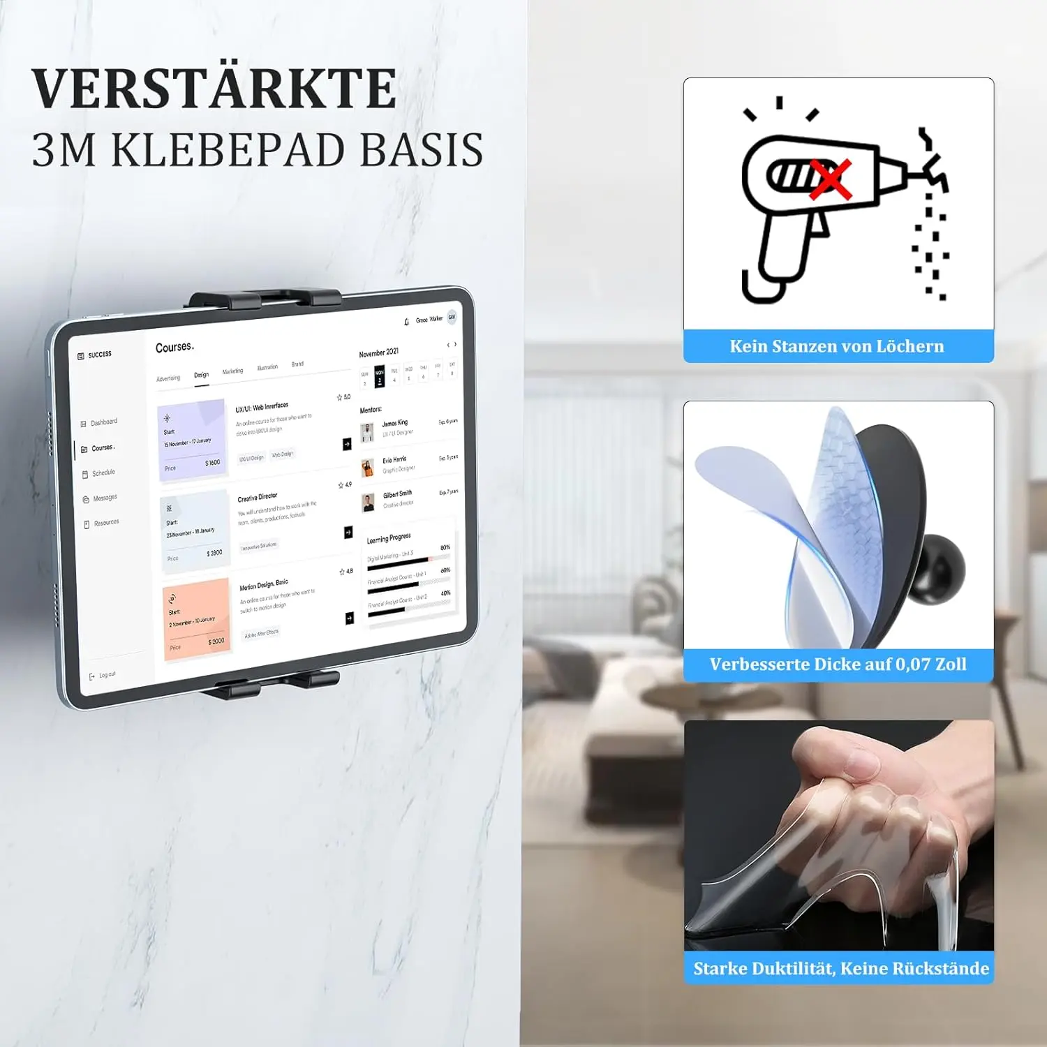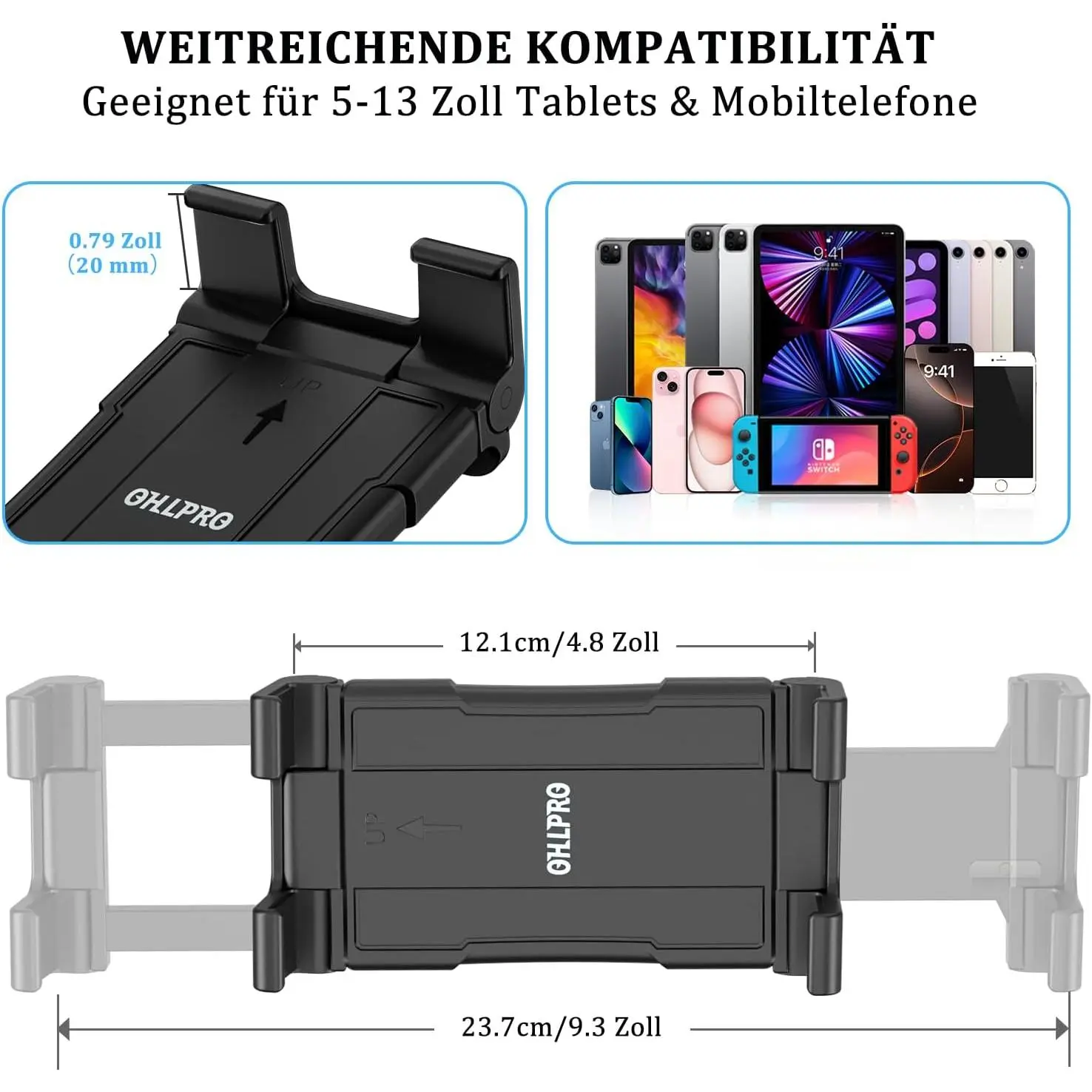 OHLPRO Tablet Wall Mount Holder, iPad Holder Wall with Adhesive Base Universal Mobile Phone Wall Mount Tablet Holder No Drill Compatible with 5-13 Inch iPad Smartphone Galaxy Tab Switch eReader
