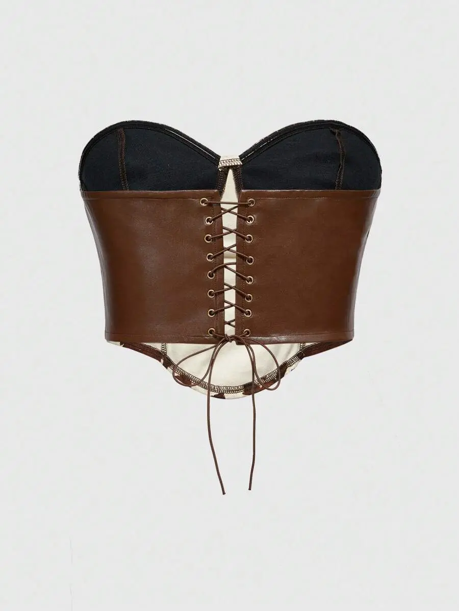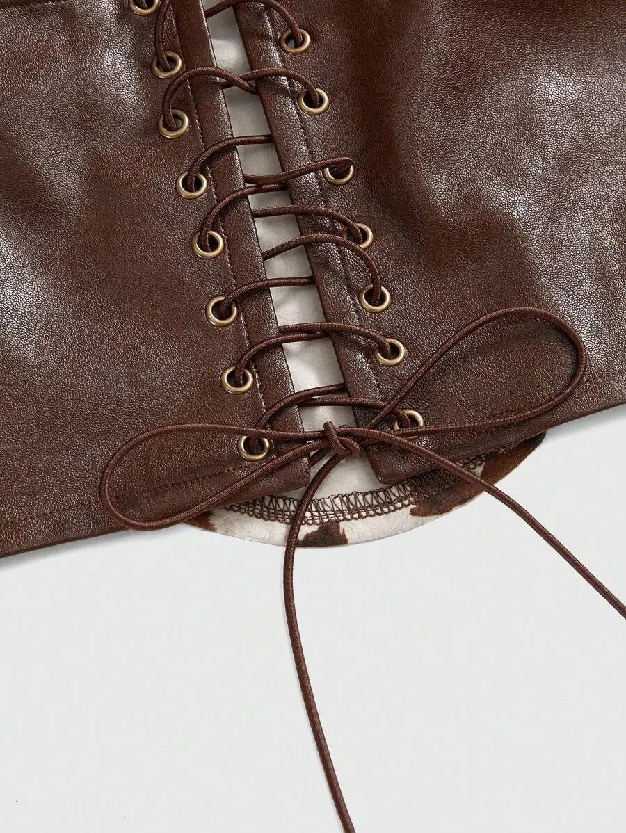 Meghana Summer Vintage Cow Print Patchwork PU Blouse For Concerts And Raves