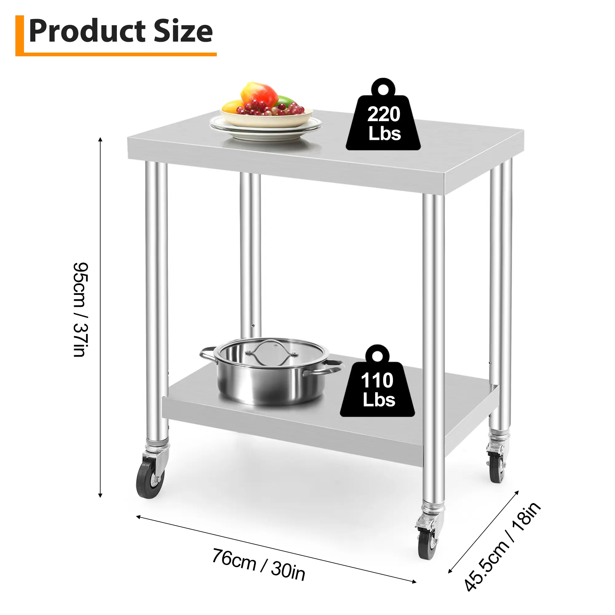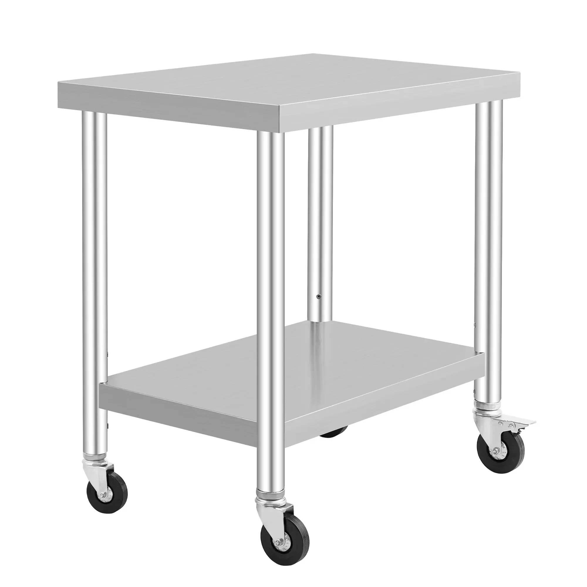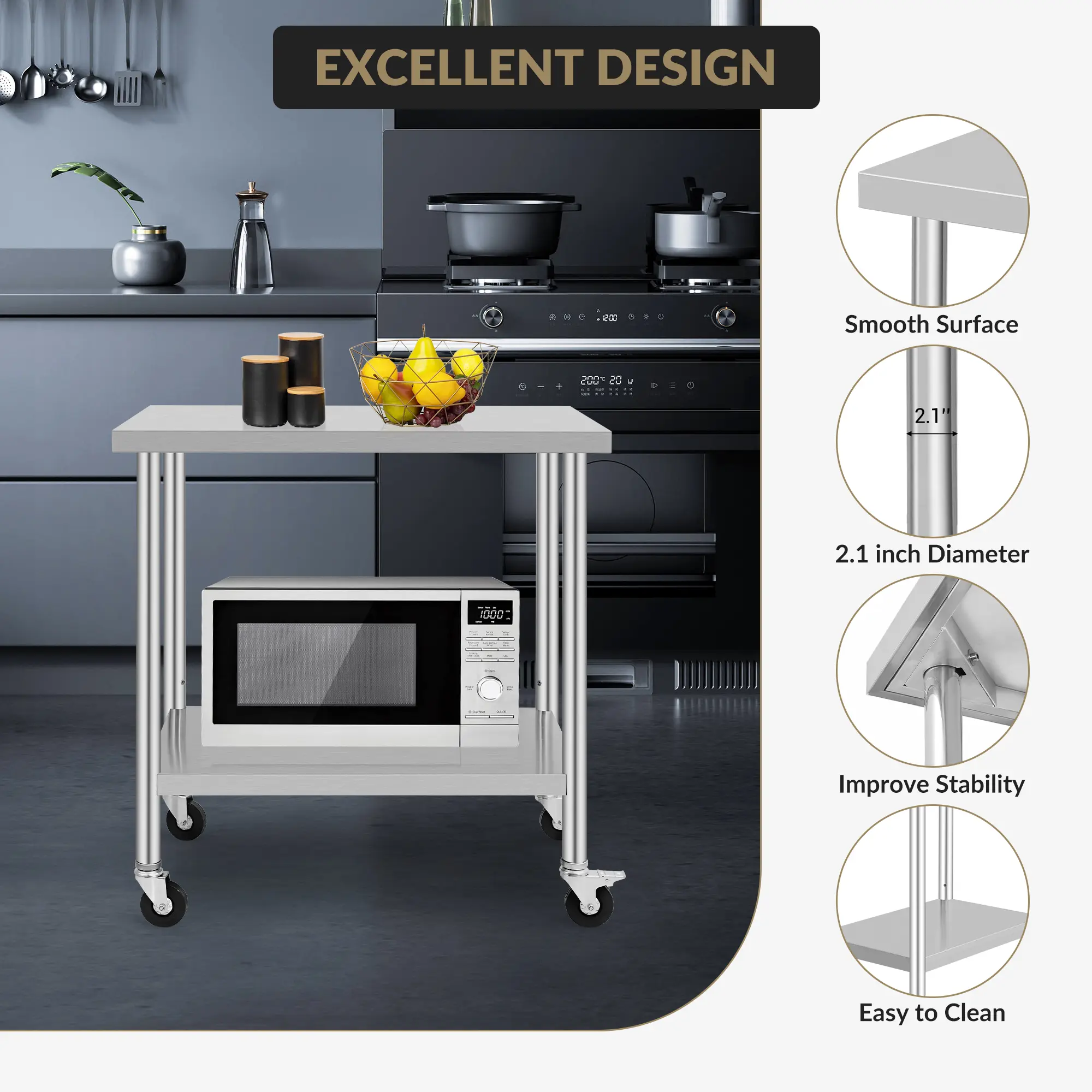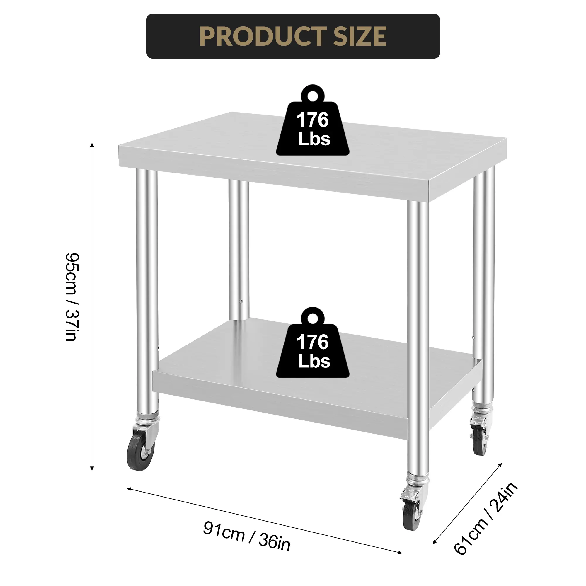 2-Tier Stainless Steel Prep Table with Wheels, 24X36 Heavy Duty Work Table for Kitchen, Restaurant, or Garage Use