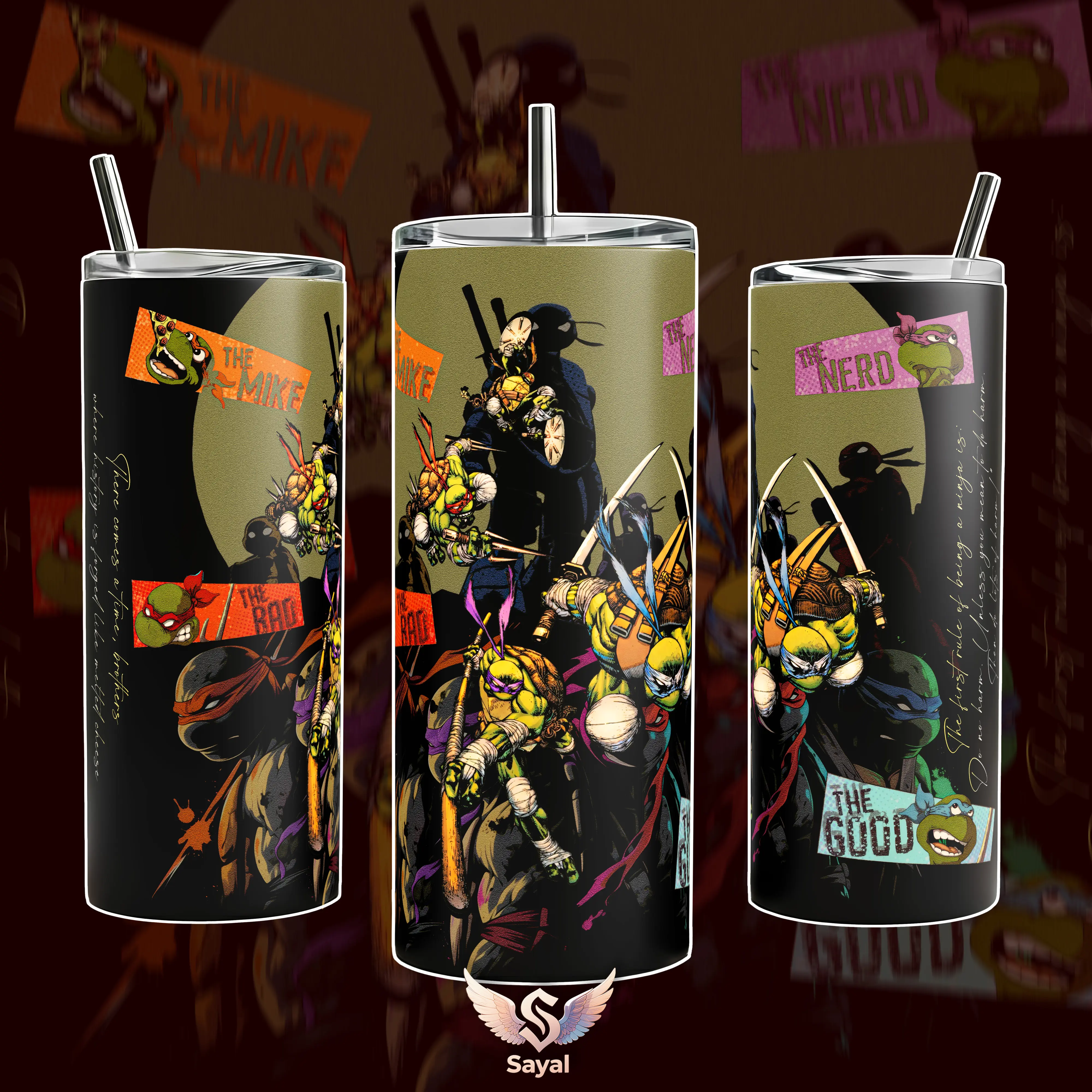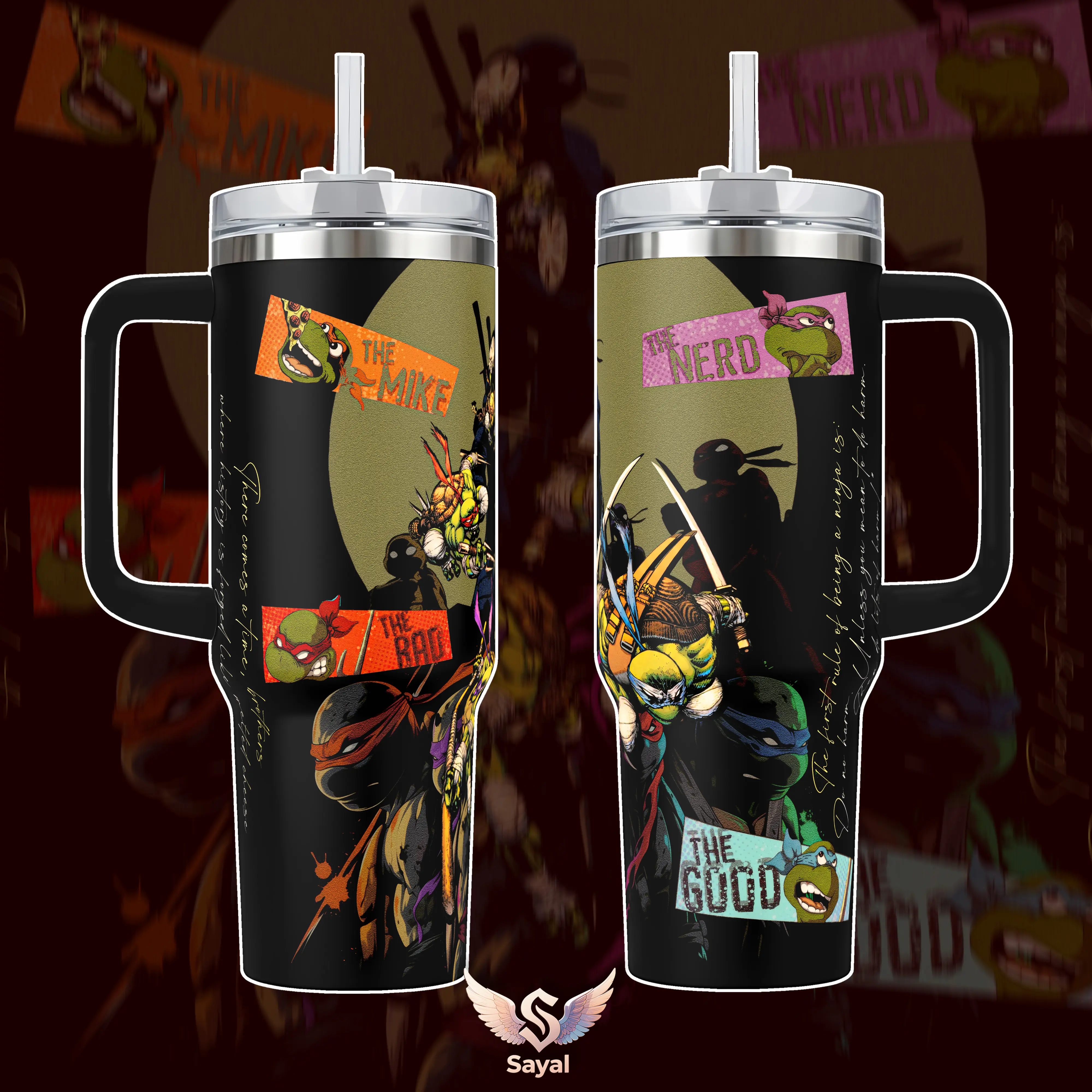 TEENAGE MUTANT NINJA TURTLES TMNT Full Crew Graphic Comic Style Sayal 40 oz Vacuum Insulated Cup Straw Keeps Drinks Hot Cold 12H+ For Ninja Lovers Gritty Aesthetic Vibes Urban Style Splash-Proof 18/8 Stainless Steel Comfort Handle Mug For Fans