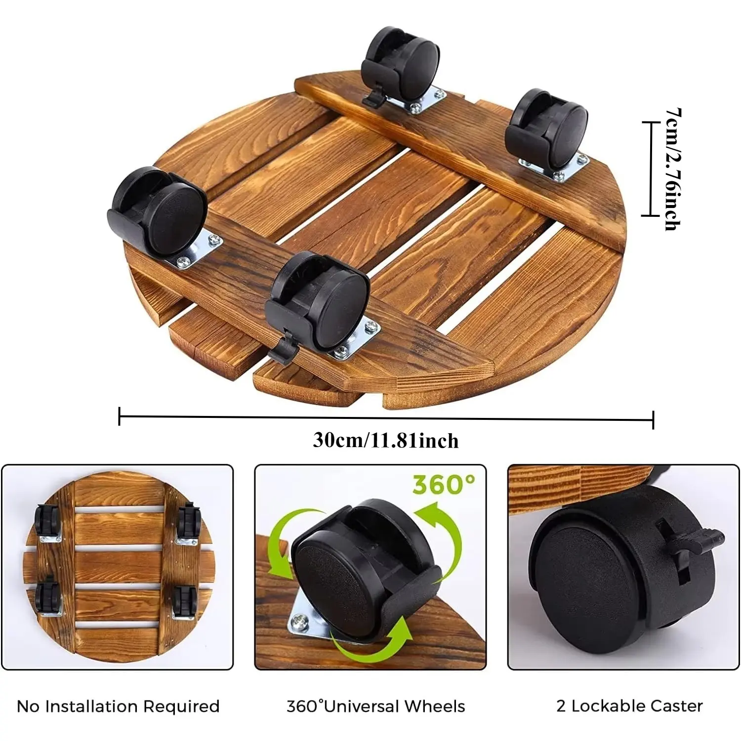 1pack Plant Caddy with Wheels, Rolling Plant Stand 220 LB Heavy Duty Wooden Round Plant Dolly with 360° Lockable Caster Wheels for Outdoor Indoor Large Plant Pots, Flower Pot, Patio