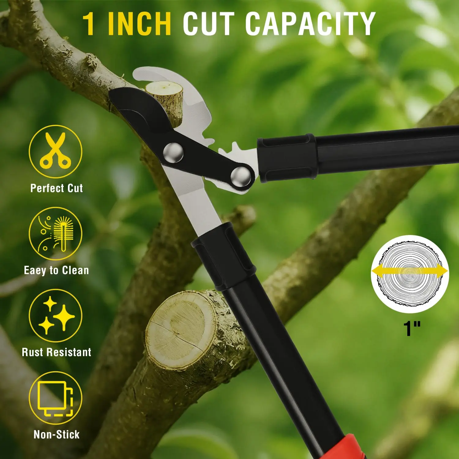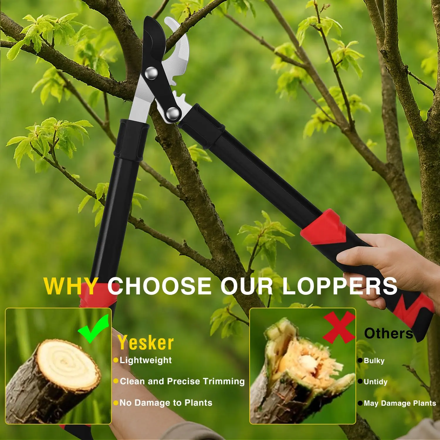 Yesker loppers have upper and lower blades made of different high-quality materials. They can easily prune branches up to 1 in(25mm) in diameter
