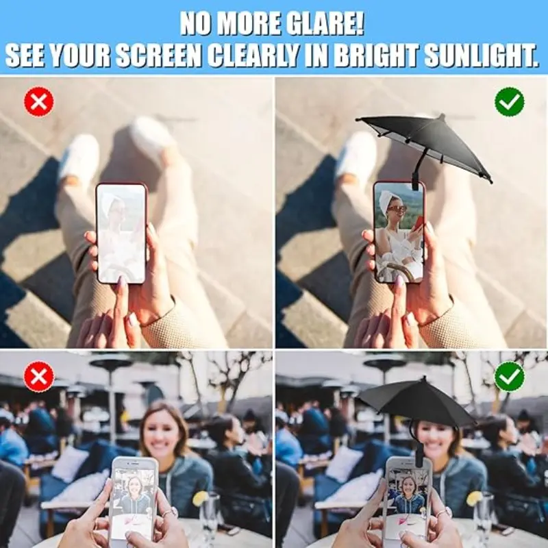 ·Cell phone umbrellas: Our cell phone umbrellas help reduce glare and direct sunlight on smartphone screens, improving visibility during outdoor activities. Please note that this product is designed to reduce glare and partial sun protection, and cannot fully cover the sun.