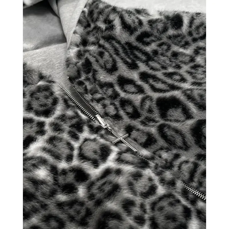 5. New Two-sided Clothing Harajuku Retro Leopard Print Fashionable Loose Zipper Hoodie Men Street Hip-hop Casual Sweatshirt Women