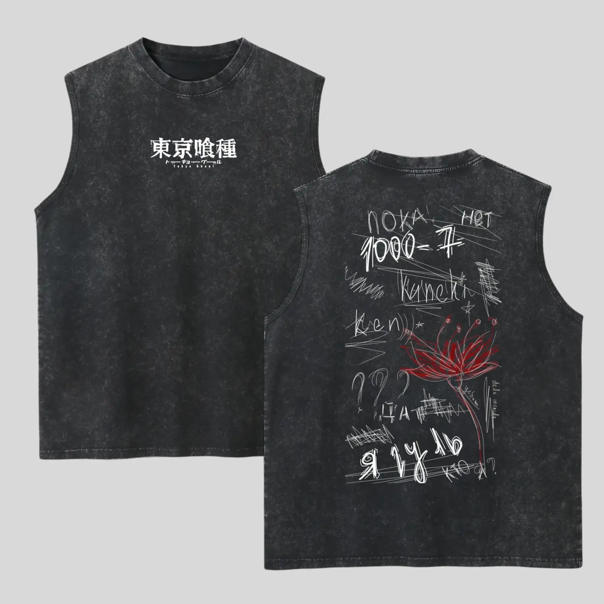 The sleeveless cut ensures freedom of movement, while the unique graphic design gives your outfit a modern, stylish edge. The washed finish creates a trendy, worn-in vibe that never goes out of style.