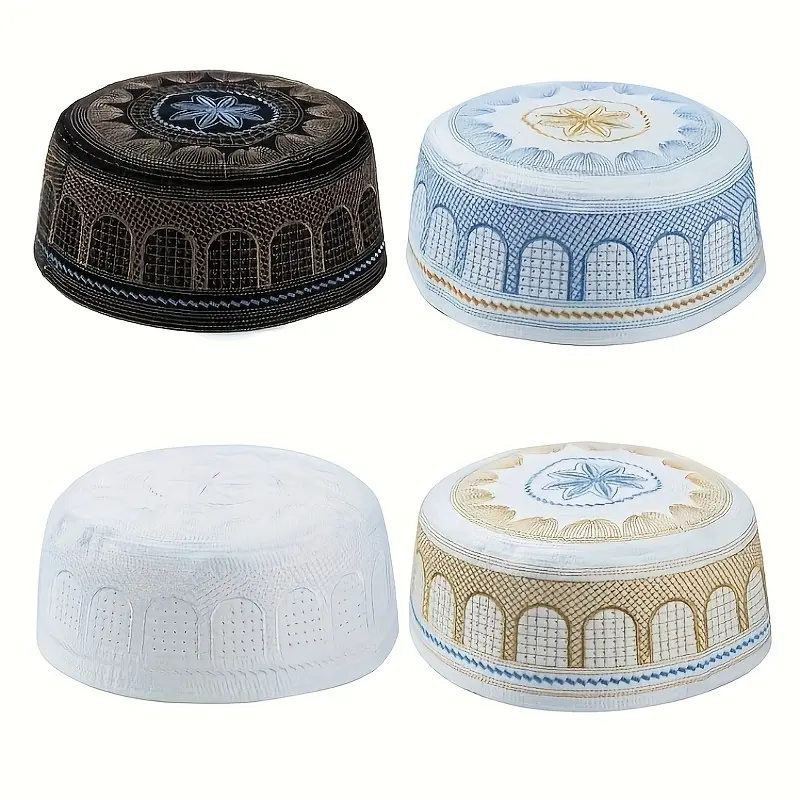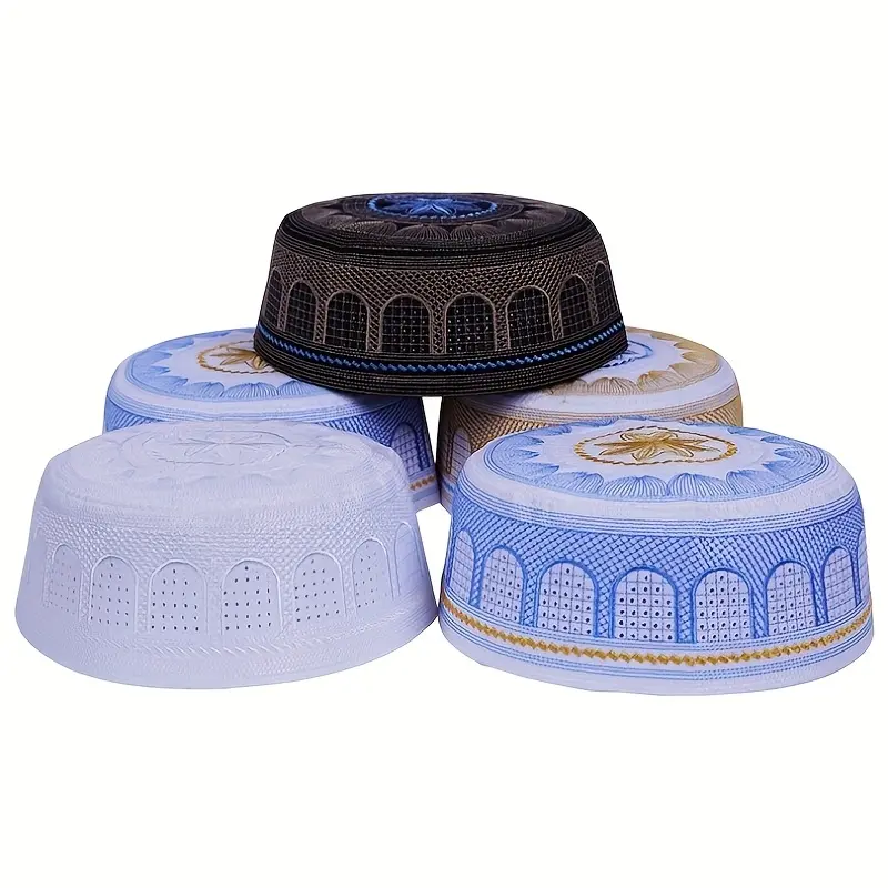 Men's Lightweight Breathable Mesh Arab Prayer Hat - Summer Summer Mubarak Muslim Taqiyah Cap for Ramadan, Eid & Casual Wear, PVC-Coated, Hand Washable, Solid Colors (Black/Grey/Brown/Beige), Religious Headwear | Arabic Pattern Hat | Durable Cap