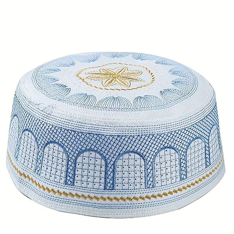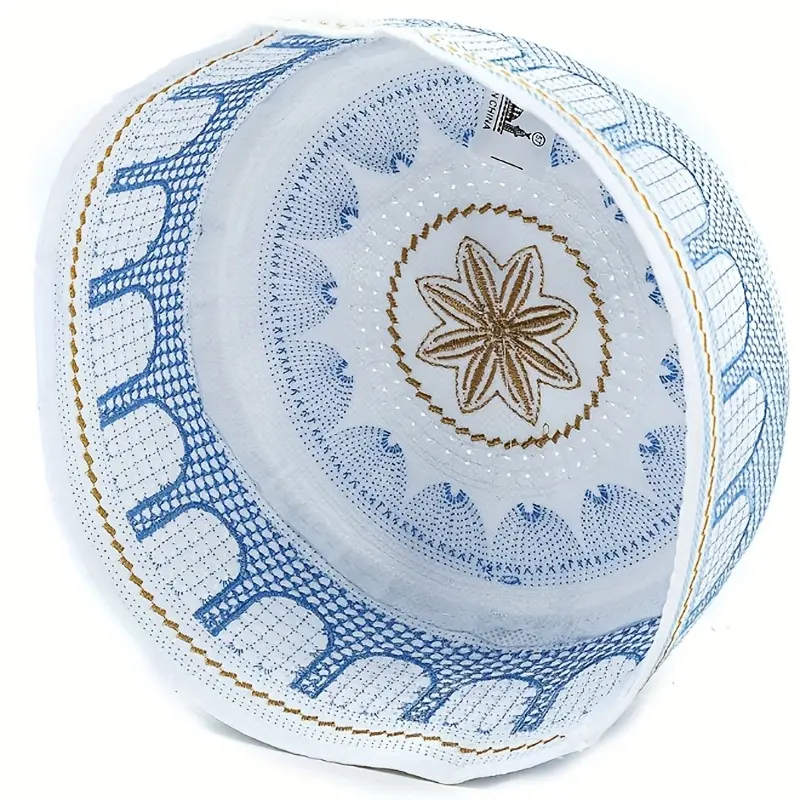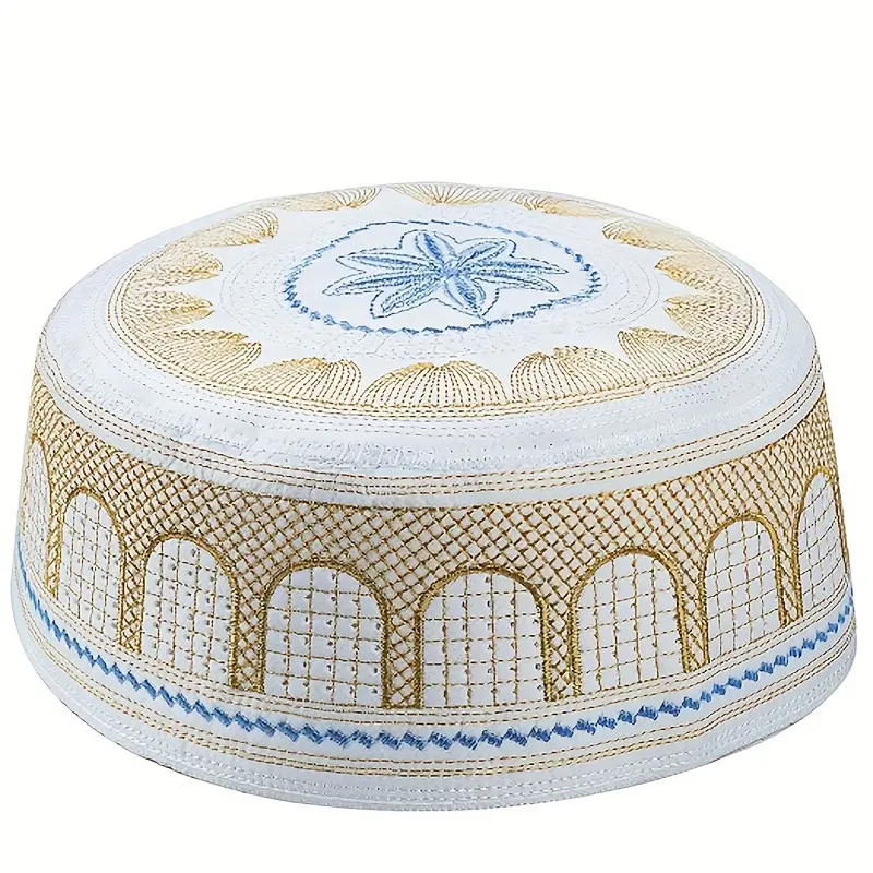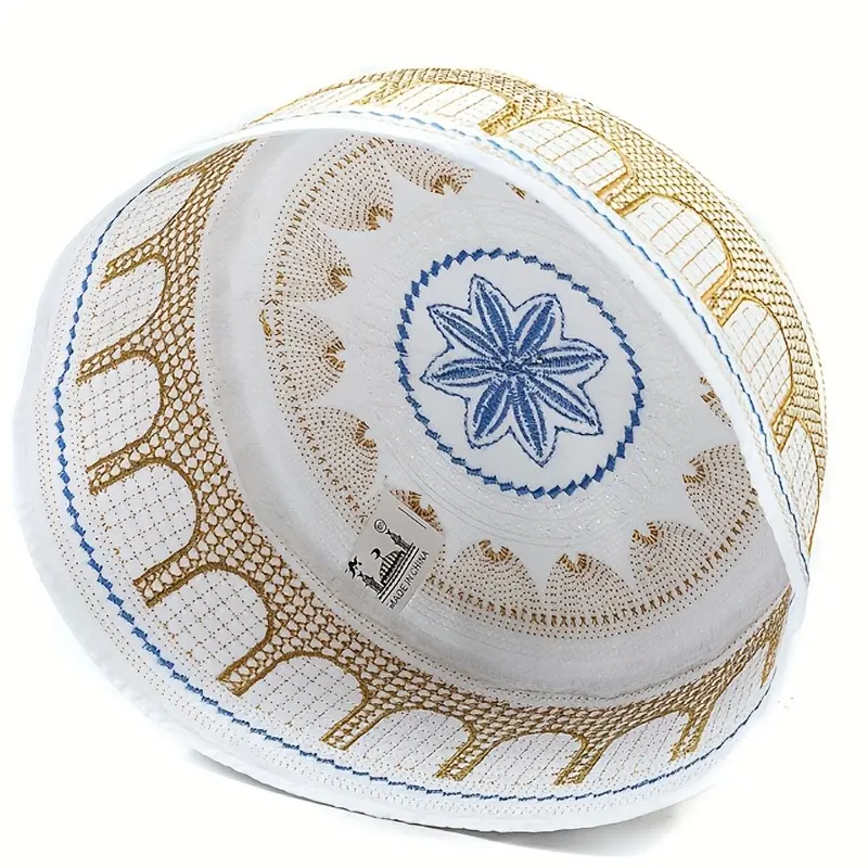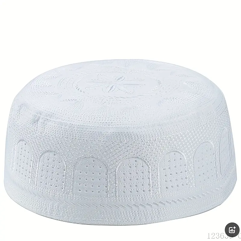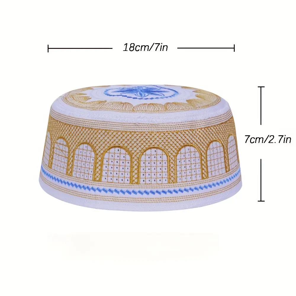 Muslim Men's White Prayer Hat - Round Top Islamic Caps for Elderly, 4 Seasons Traditional Hui Ethnic Hat