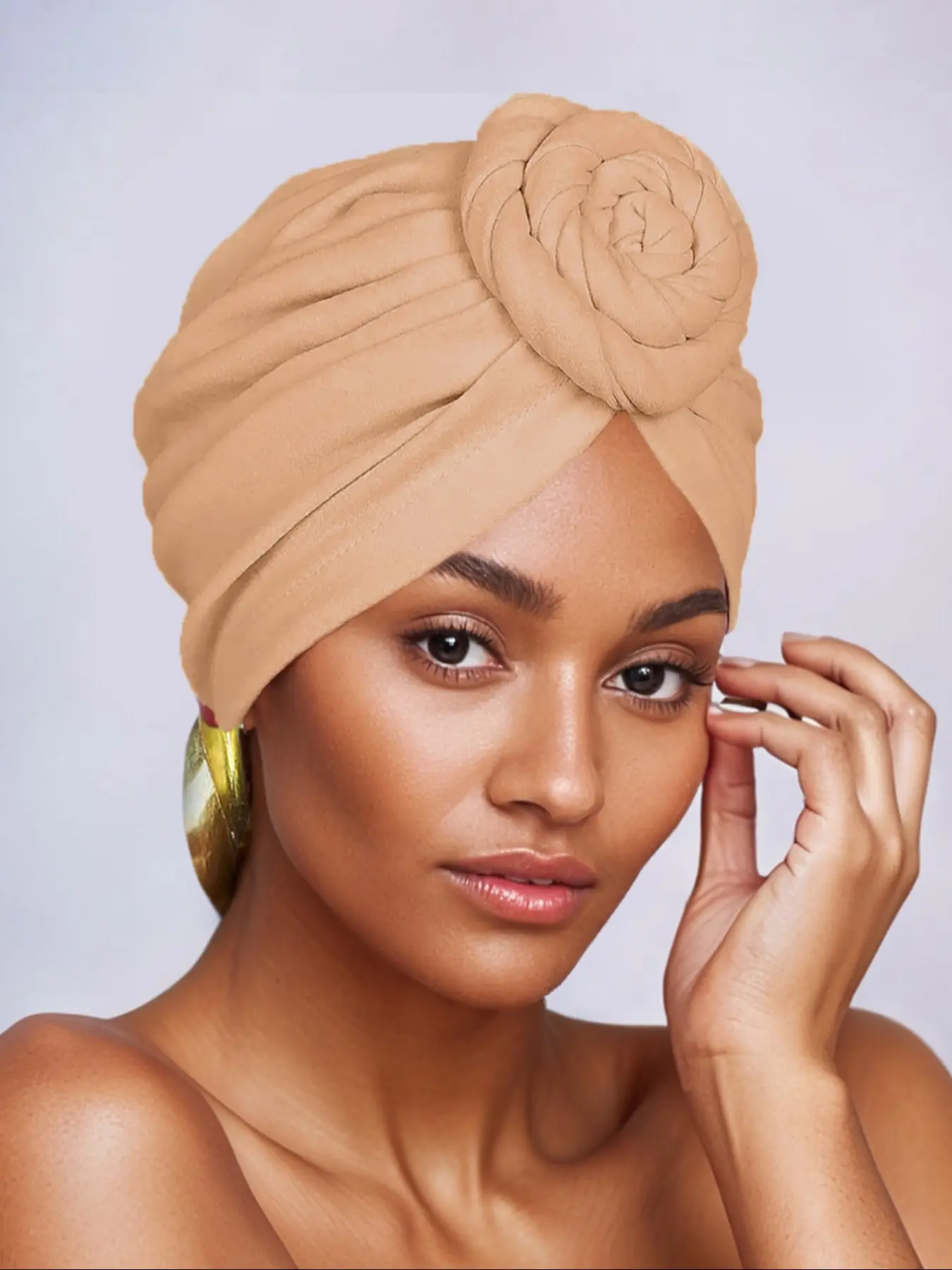 Women's Ethnic Headscarf Hat, Floral Twist Design Indian Turban Cap, Casual Fitted Style for All Seasons, Perfect for Parties & Daily Use