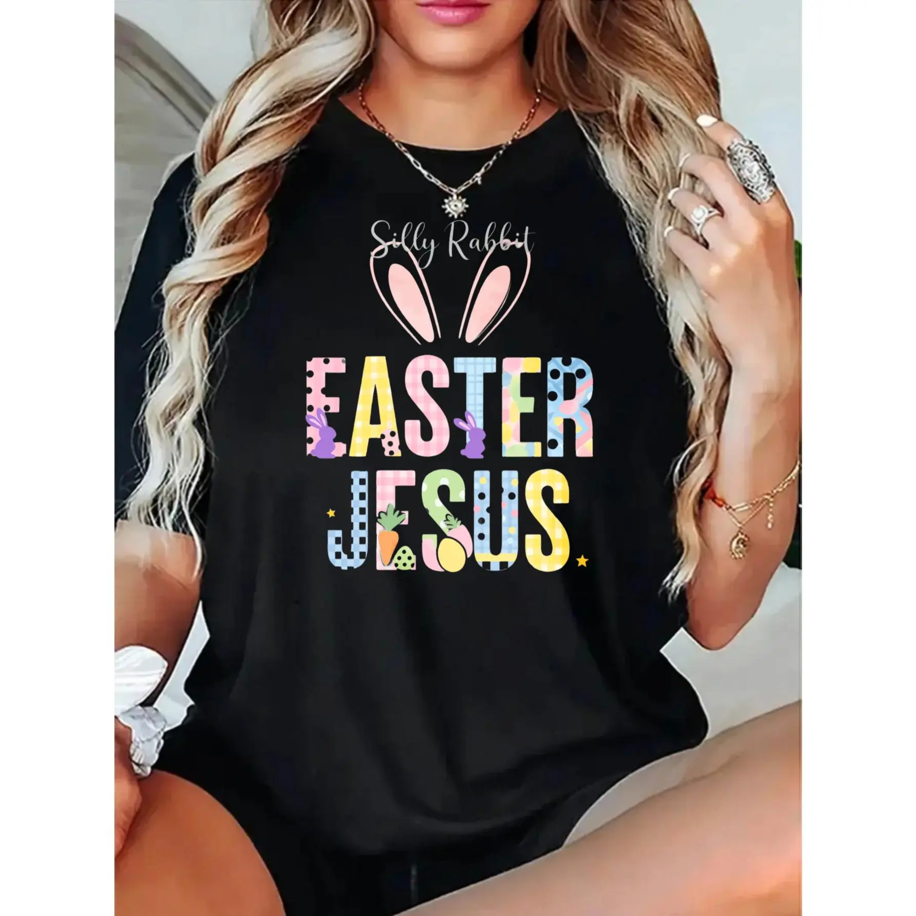Silly Rabbit Easter Jesus Black T Shirt With Colorful Bunny Ears And Religious Text Design