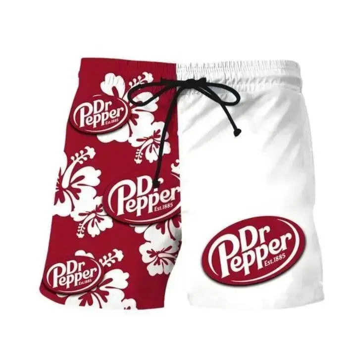Dr Pepper Floral Matching Couples Swimwear Set with Iconic Beverage Graphics Adjustable Womens Tie Side Thong Bikini & Mens Beach Swim Shorts Hawaiian Style Summer Vacation Beachwear