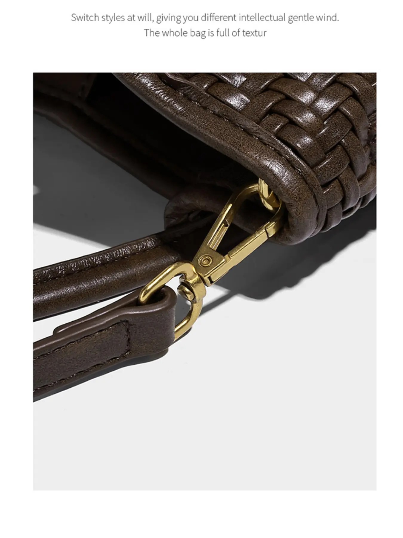 New Handwoven Crossbody Shoulder Clutch, Casual Soft Leather Bao Single Shoulder Bag, Fashionable Large Capacity Basket Bag, Simple High-End Lazy Style