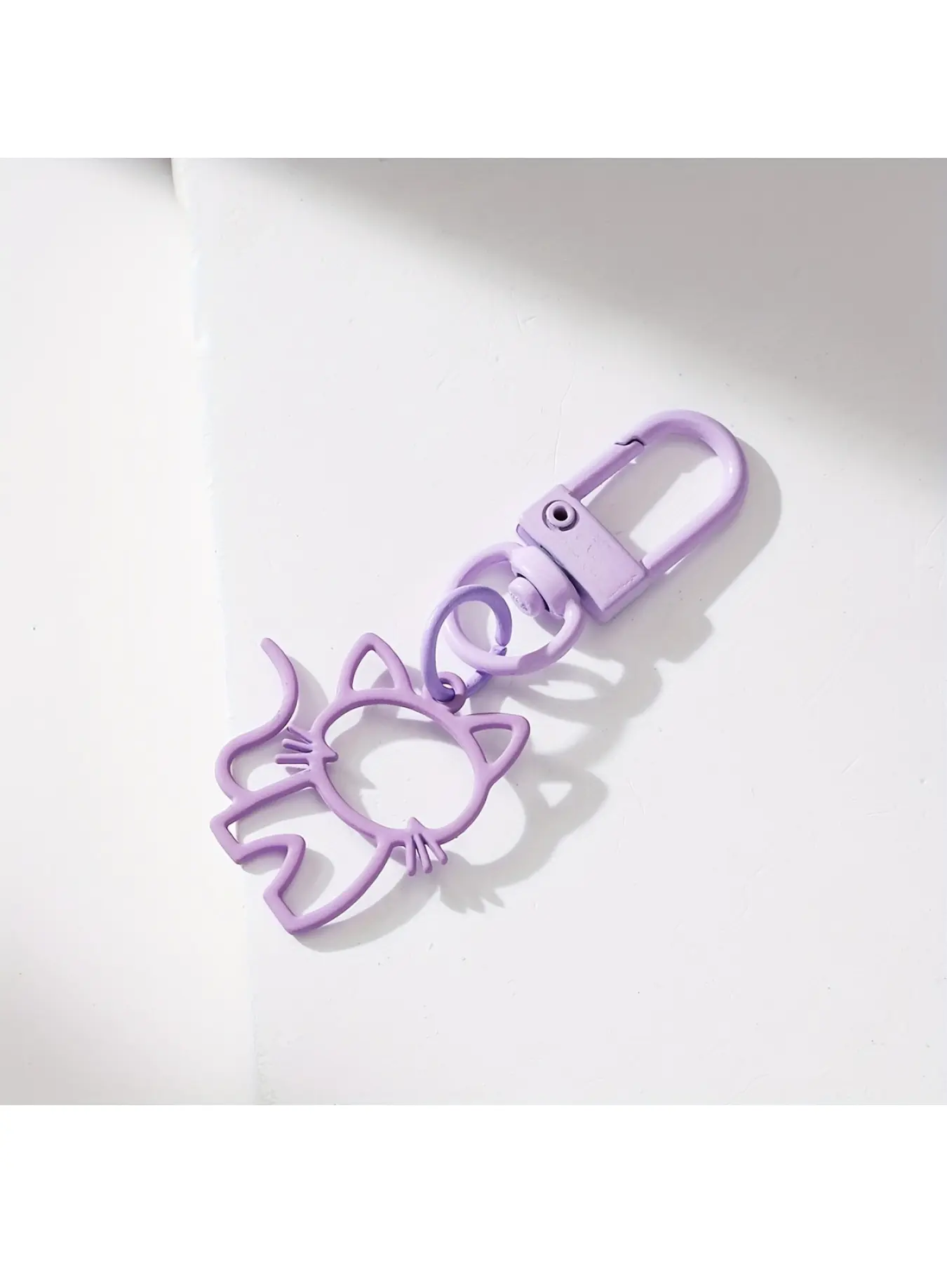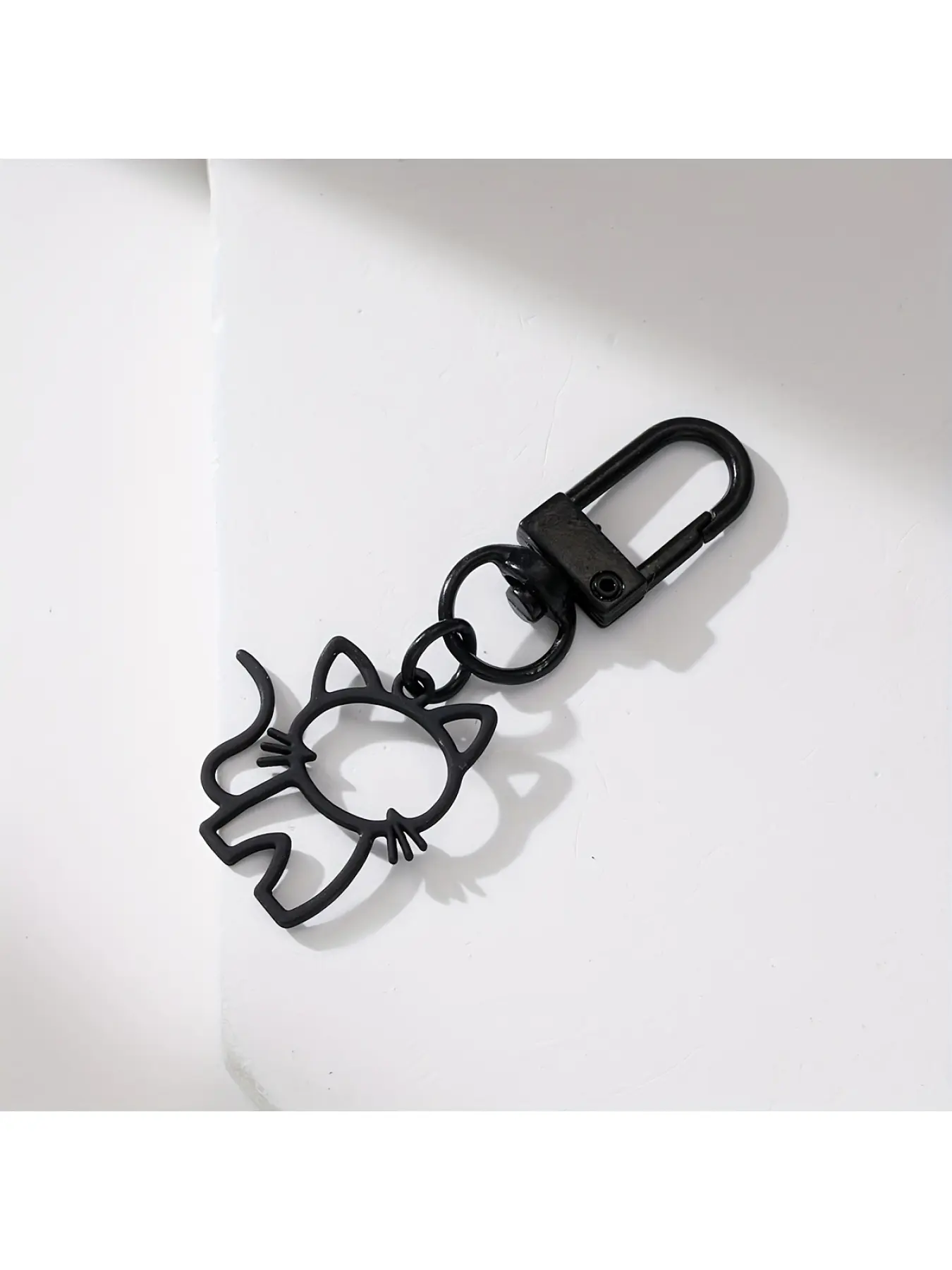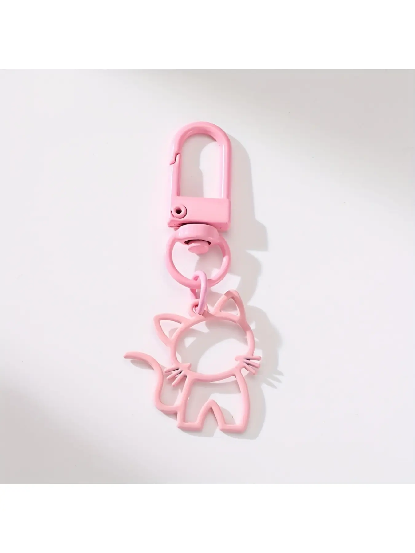 1pc Cute Cat Keychain with Hollow Design - Alloy Car Key & Backpack Charm, Colorful Cat Keyring for Valentine's Day Gift, Men's Fashion Accessory, Playful Key Holder | Quality Metal Ring Attachment, Cute Keychain