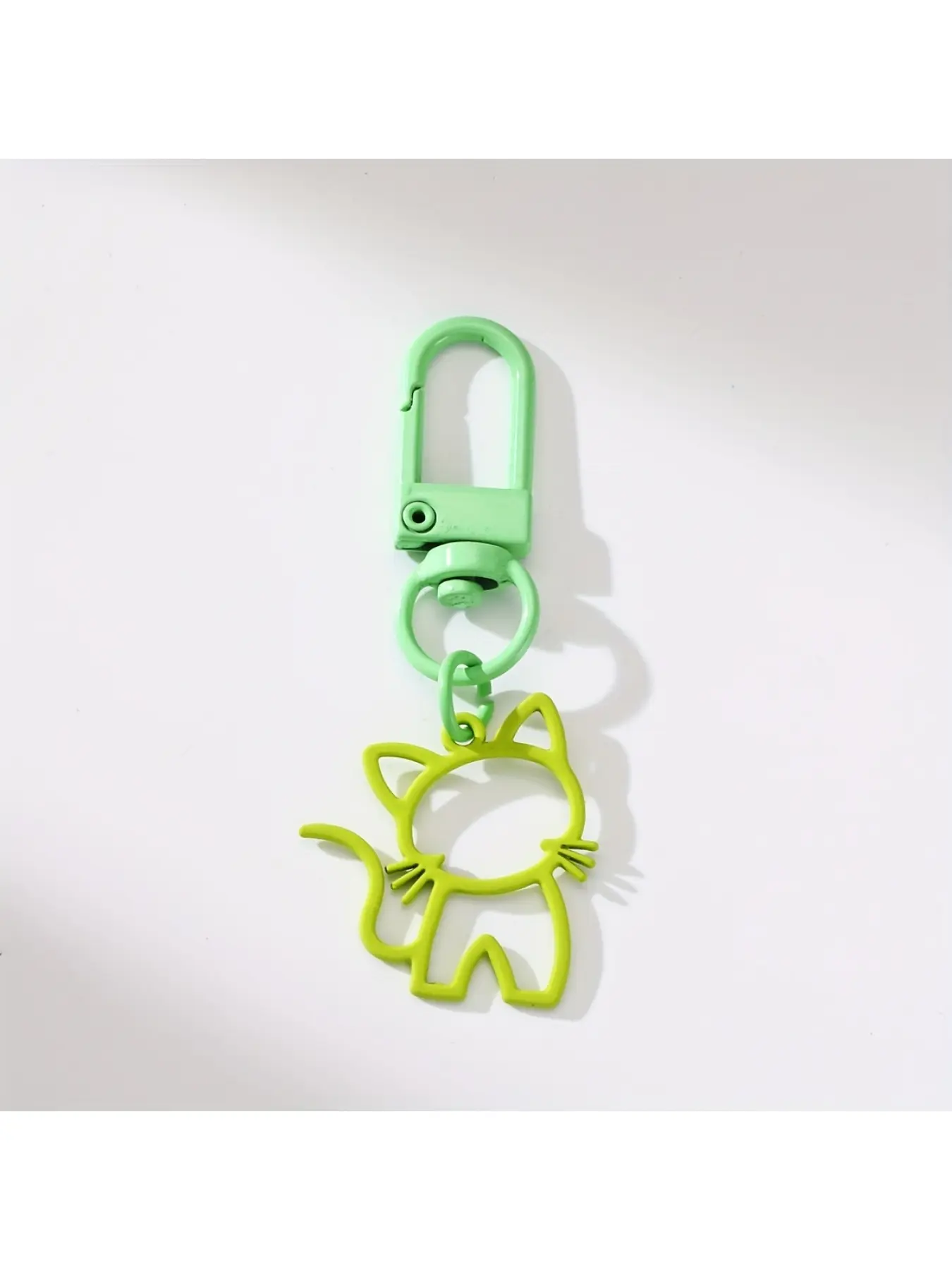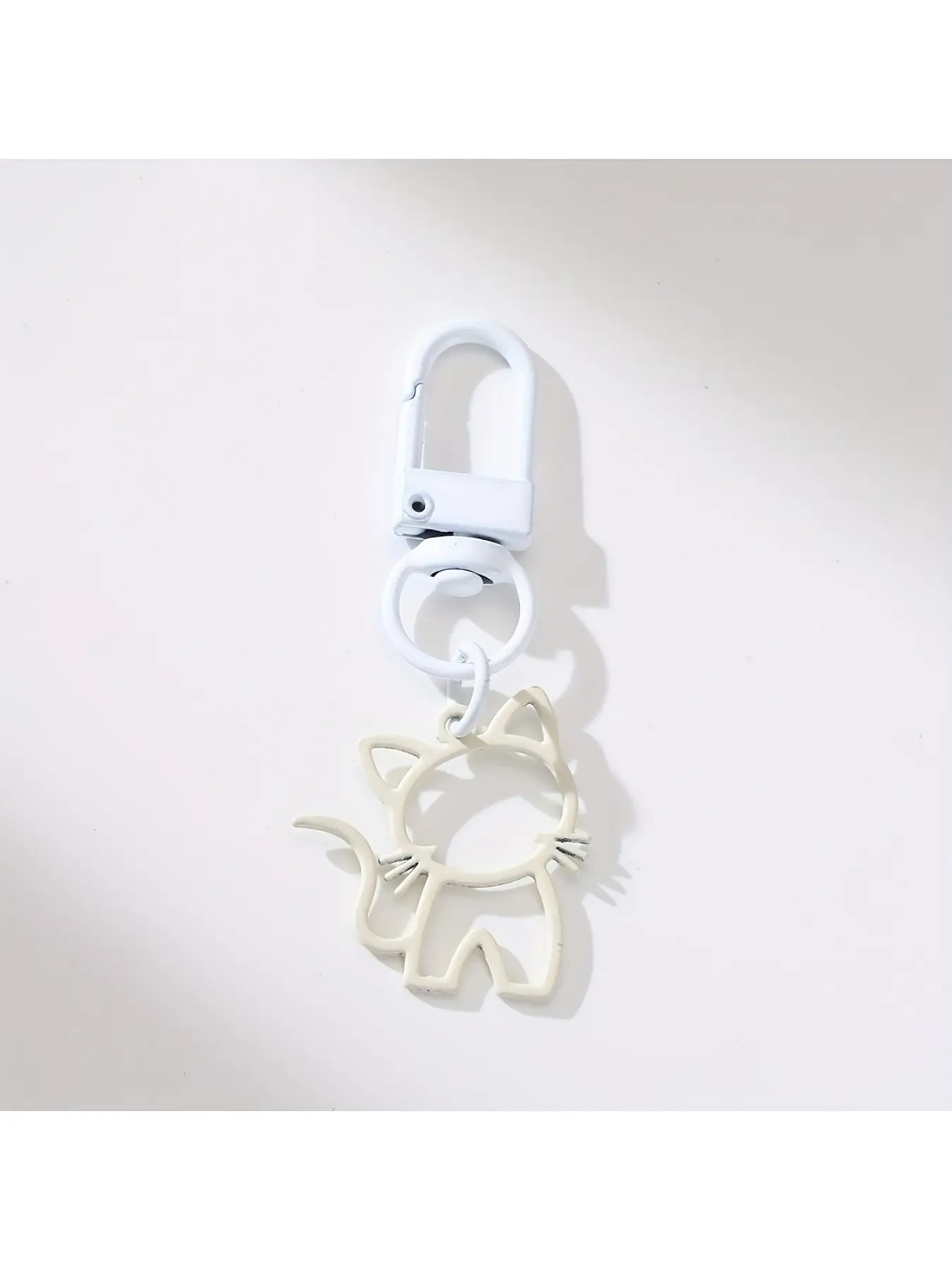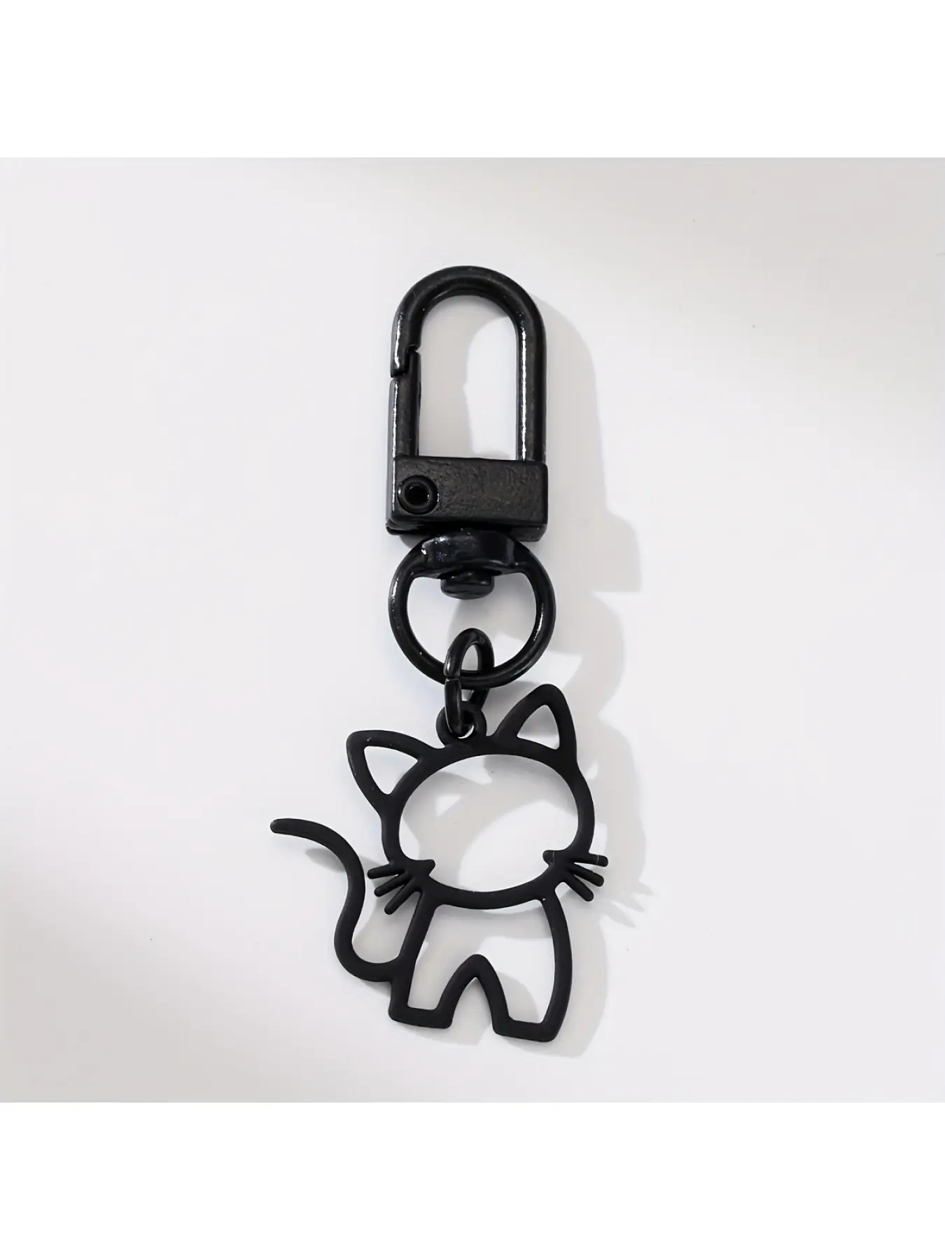1pc Cute Cat Keychain with Hollow Design - Alloy Car Key & Backpack Charm, Colorful Cat Keyring for Valentine's Day Gift, Men's Fashion Accessory, Playful Key Holder | Quality Metal Ring Attachment, Cute Keychain