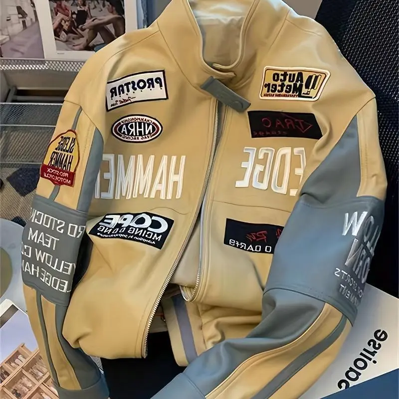 Material:PU leather/Composition:100% Polyurethane/Details:Embroidered/Pattern:Alphabets/Sheer:No/Fabric:Medium Stretch/Collar Style:Mandarin Collar/Season:Fall/Winter/Operation Instruction:Do not wash/Style:Y2K/Fit Type:Regular/Applicable Age Group:14+/Weaving Method:Non-textile materials/Lining:Polyester Fiber (polyester)/Item ID:FX 360266