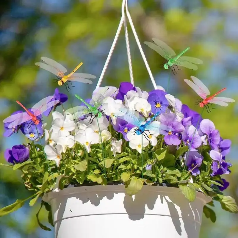 12 Pack Dragon Garden Clips 3D Dragonfly Decor Metal Garden Stakes for Outdoor