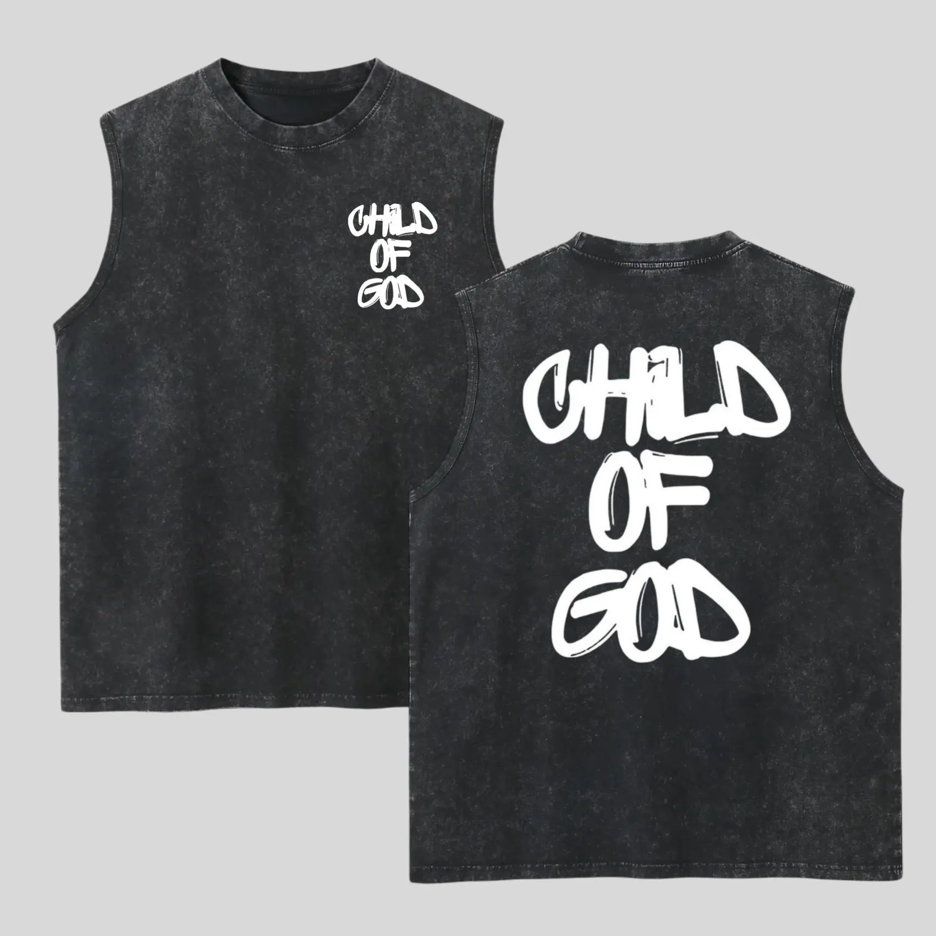 5. Vintage Child Of God Washed Tank Top, Gym Essential, Vintage Casual Crewneck Sleeveless Menswear Tops Classic Cotton Fabric Streetwear