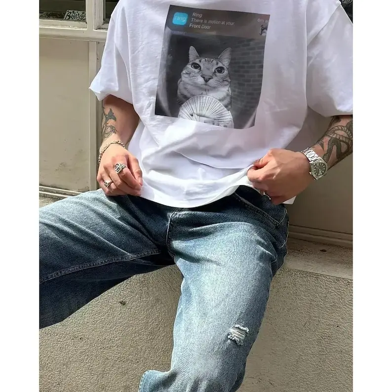 5. Ring Cat with Motion Meme - Funny Cat Shirt, Parody Tees, Funny Cat, Cat Meme, Meme Shirts, Shitpost Shirt, Silly Shirts Cotton