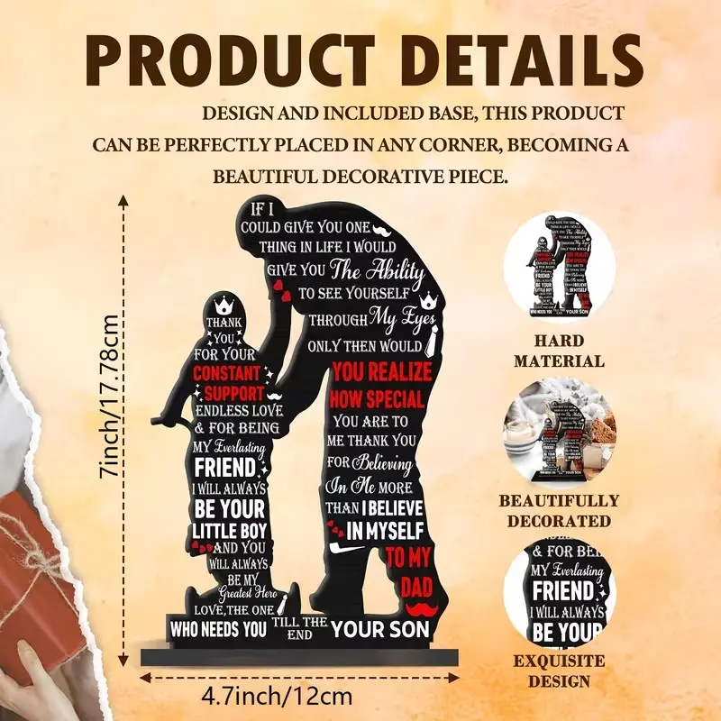 Wooden Plaque Gift for Dad, Son's Birthday or Father's Day Present, Cool Decorative Sign, Best Dad Decoration, 2D Plane Design