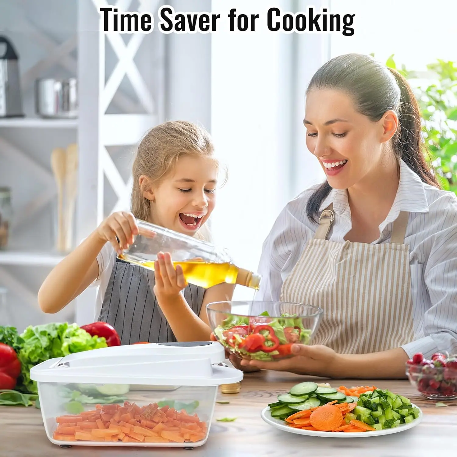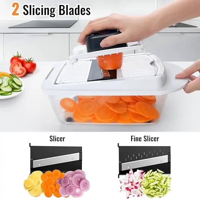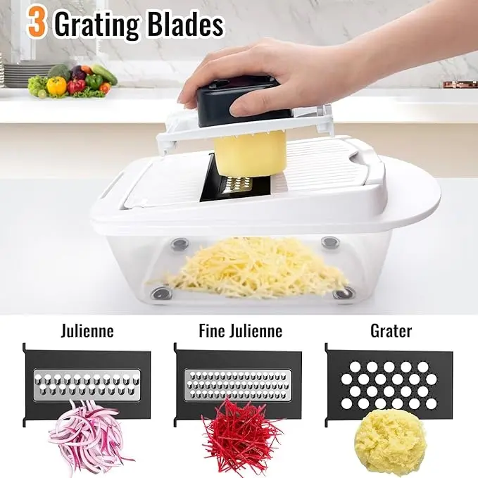 ·8 Interchangeable Blades Chop, slice, dice, grate — all in one tool