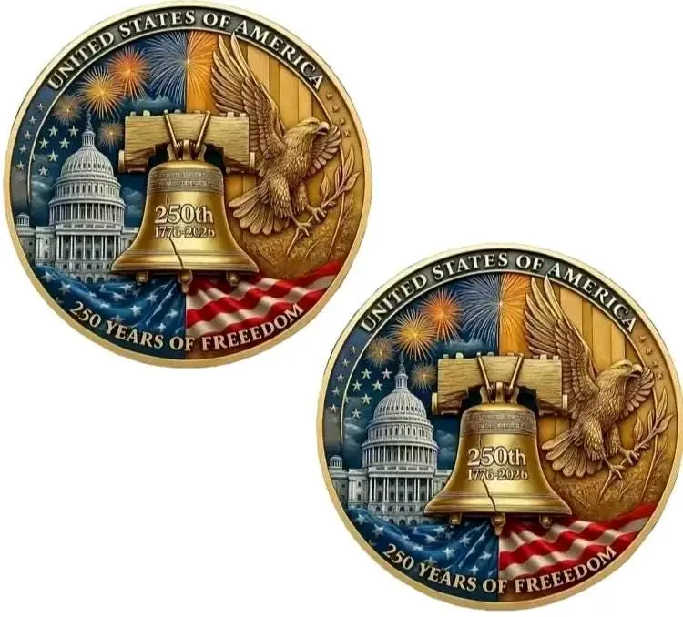 1776-2026, 250TH Anniversary U.S.A. Commemorative Challenge Hobo Nickel Coin Gift for Patriots America Merchandise 250 Collectible USA Independence Day, Fourth of July
