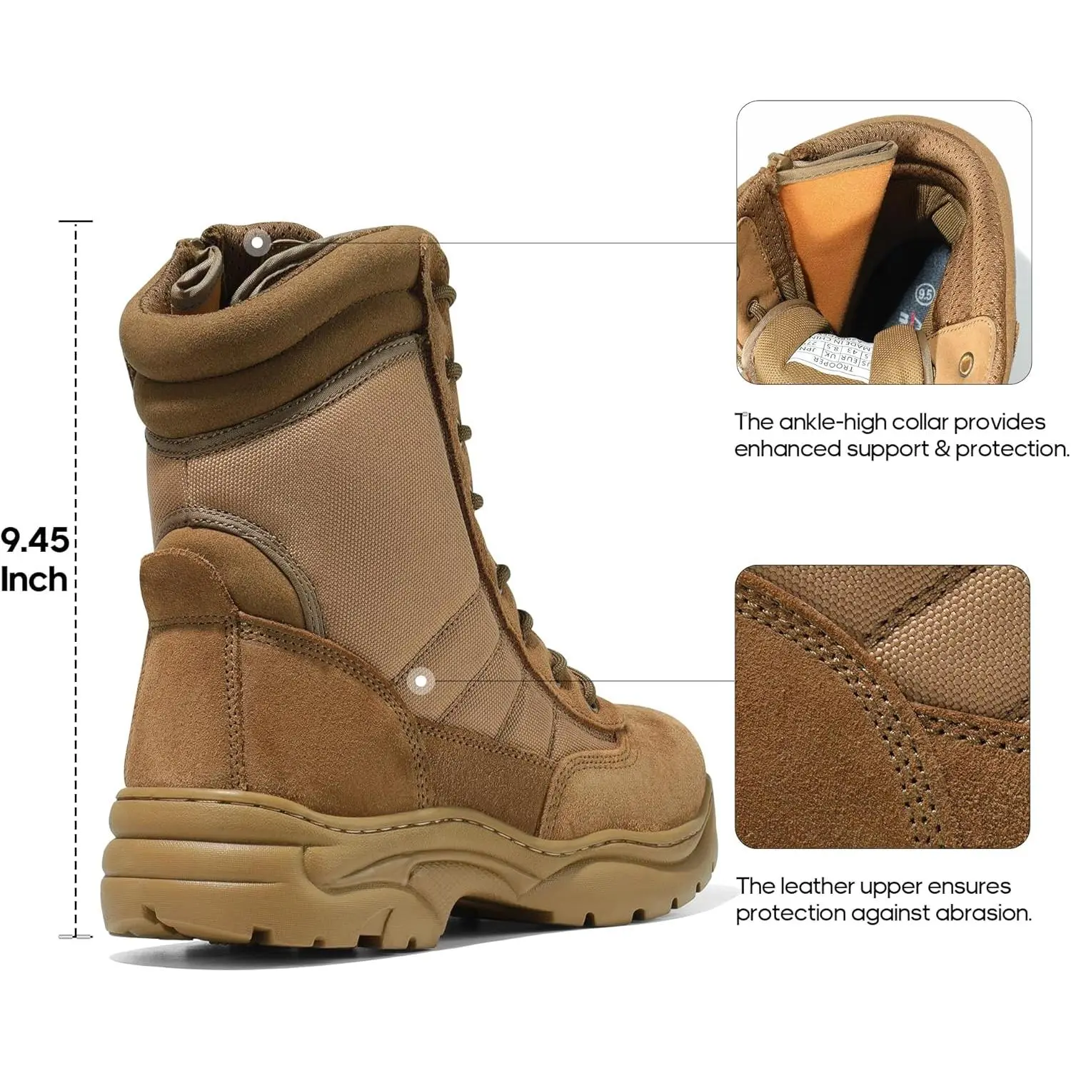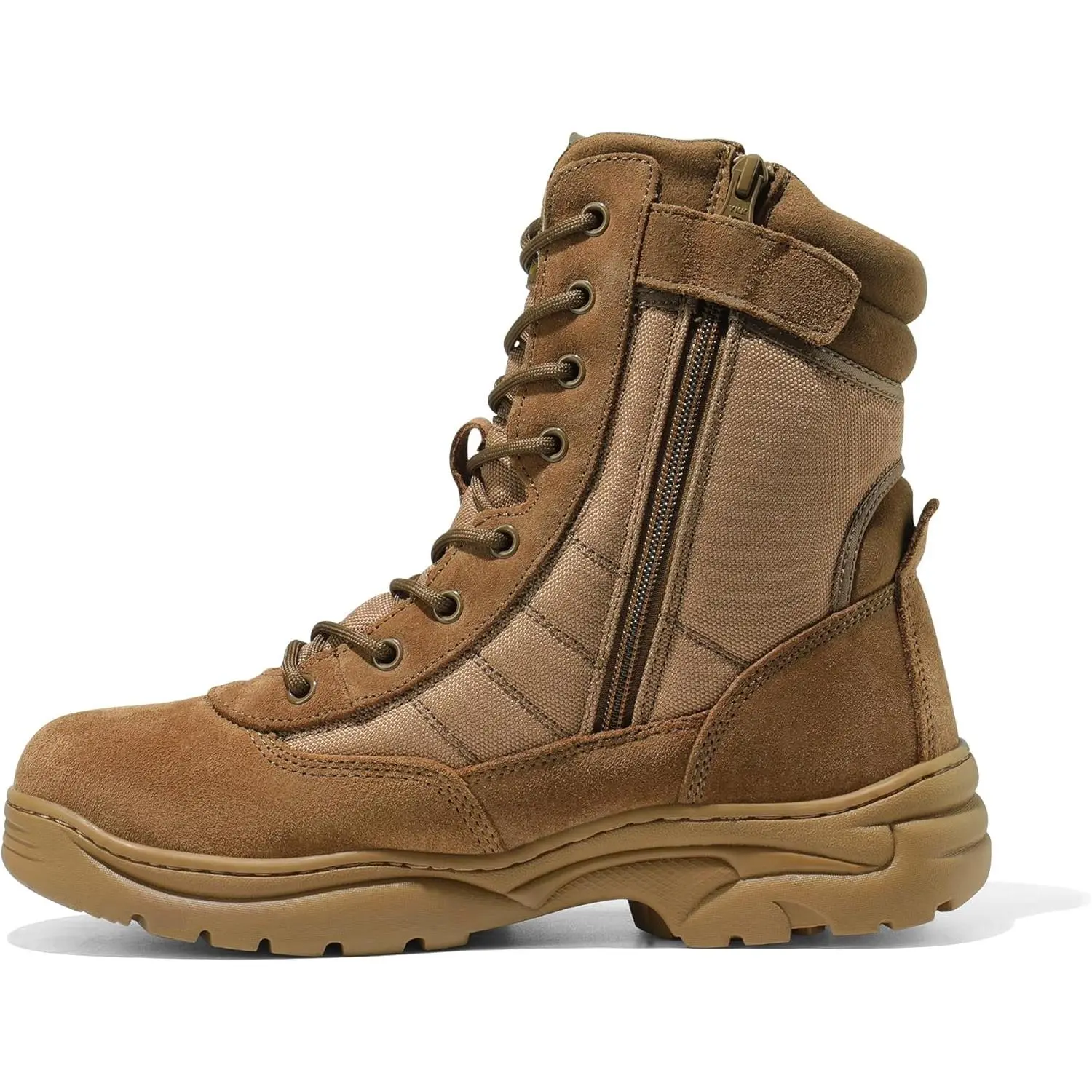 AGS NORTIV 8 Men's Military Tactical Work Boots Side Zipper Leather Motorcycle Combat Boots Trooper