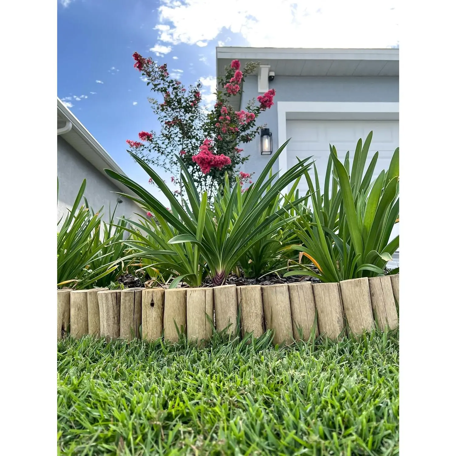 DECORATIVE GARDEN BORDERS: Create a beautiful floral display in your garden and enhance your landscape curb appeal with Eucalyptus wood flower bed bordersDURABLE & RESISTANT: Garden borders and edging made of natural Eucalyptus solid-log wood from South Africa are durable and naturally resistant to rotting and decay when compared to other types of woodDIY NO-DIG LANDSCAPE BORDER EDGING: Install Eucalyptus wood garden fencing borders by simply placing the decorative garden border on the designated space in your garden, its heavy-duty wood logs will stay in place without a supportBEST USE: Versatile wood landscape edging creates clean, crisp lines between beds and other garden areas, install it on a square, round, rectangular, curved, or any other shape landscapingMEASUREMENTS: sizes are approximately 6 in.H x 6.3 ft. L, Eucalyptus wood log garden is a natural product and diameter can vary from 1 in.W to 2 in.W, WEIGHT is 11 lb