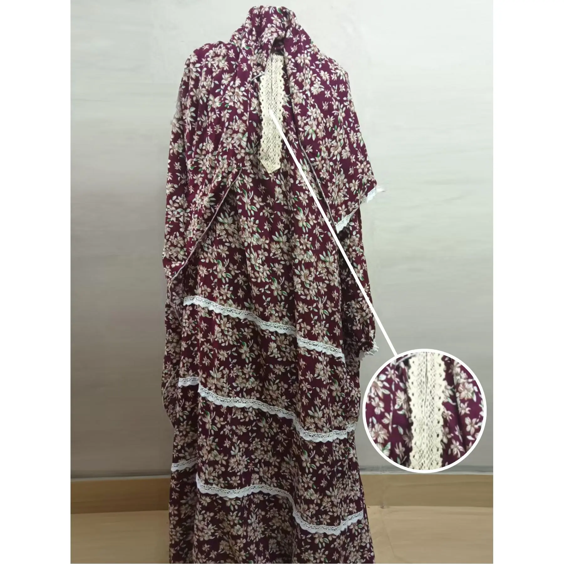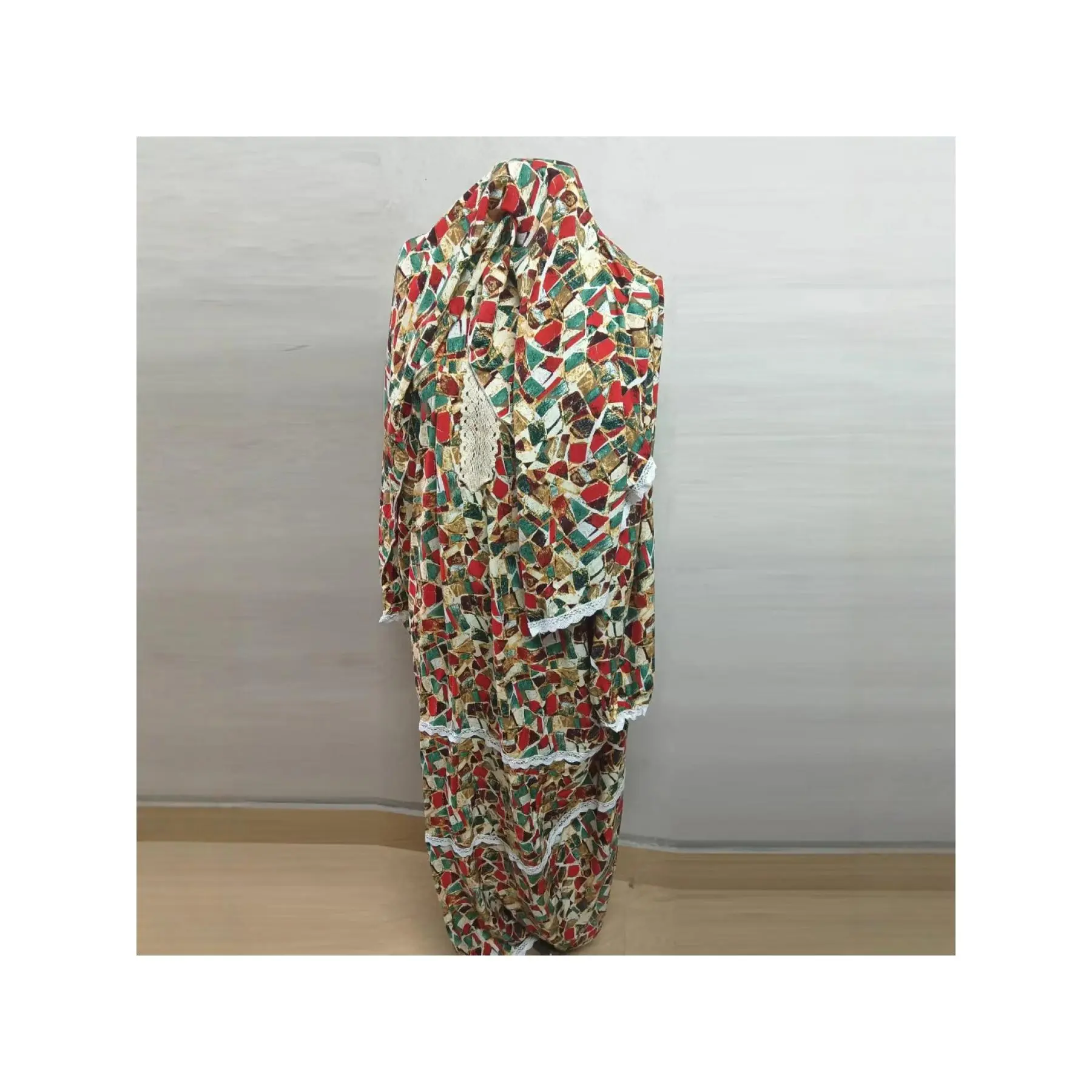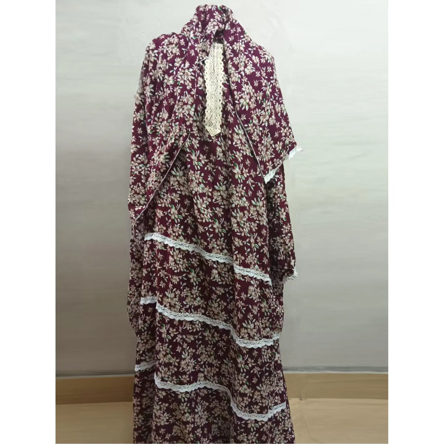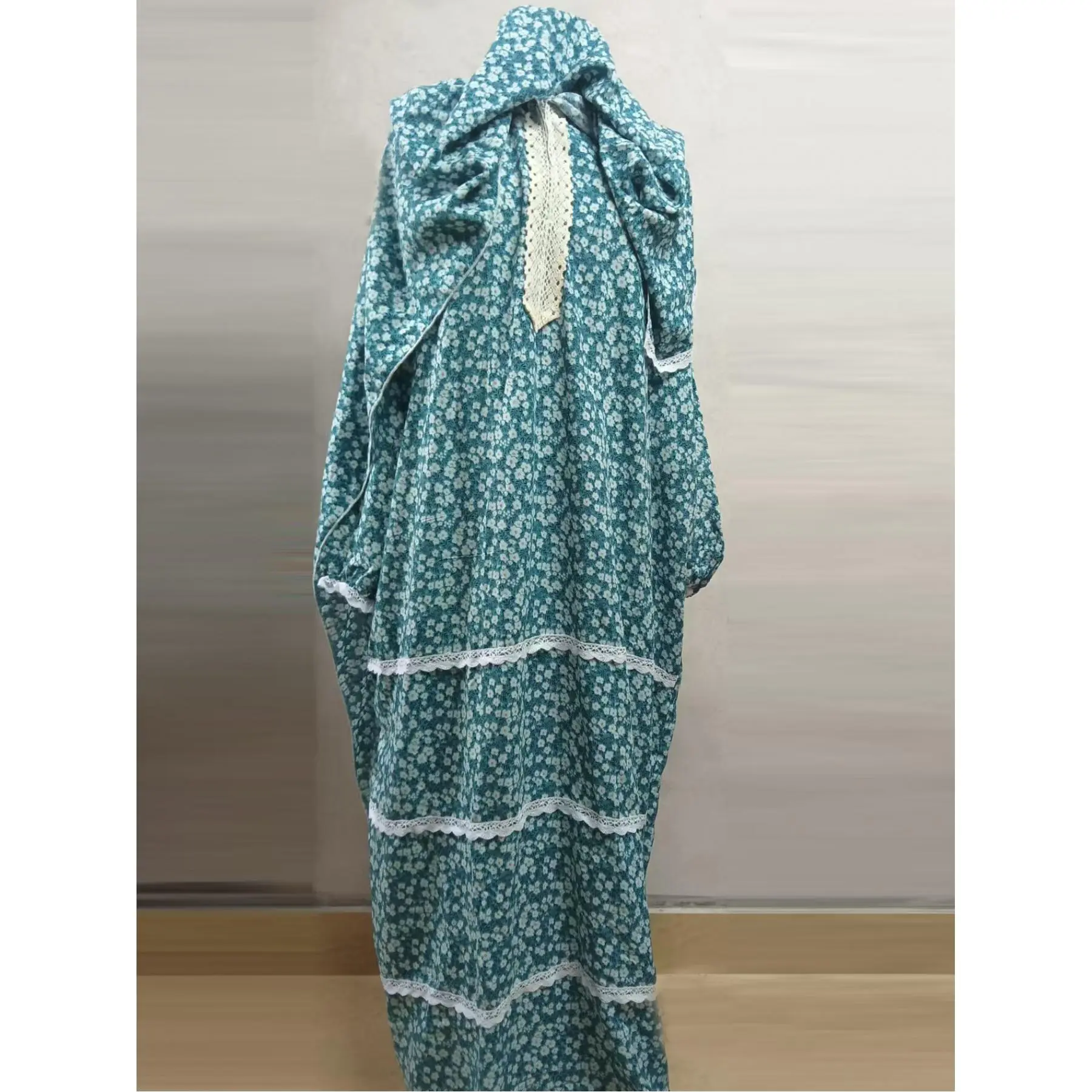 New Women'S Dress, Middle Eastern Style Robe, Fashionable Printed Prayer Gown with Attached Scarf