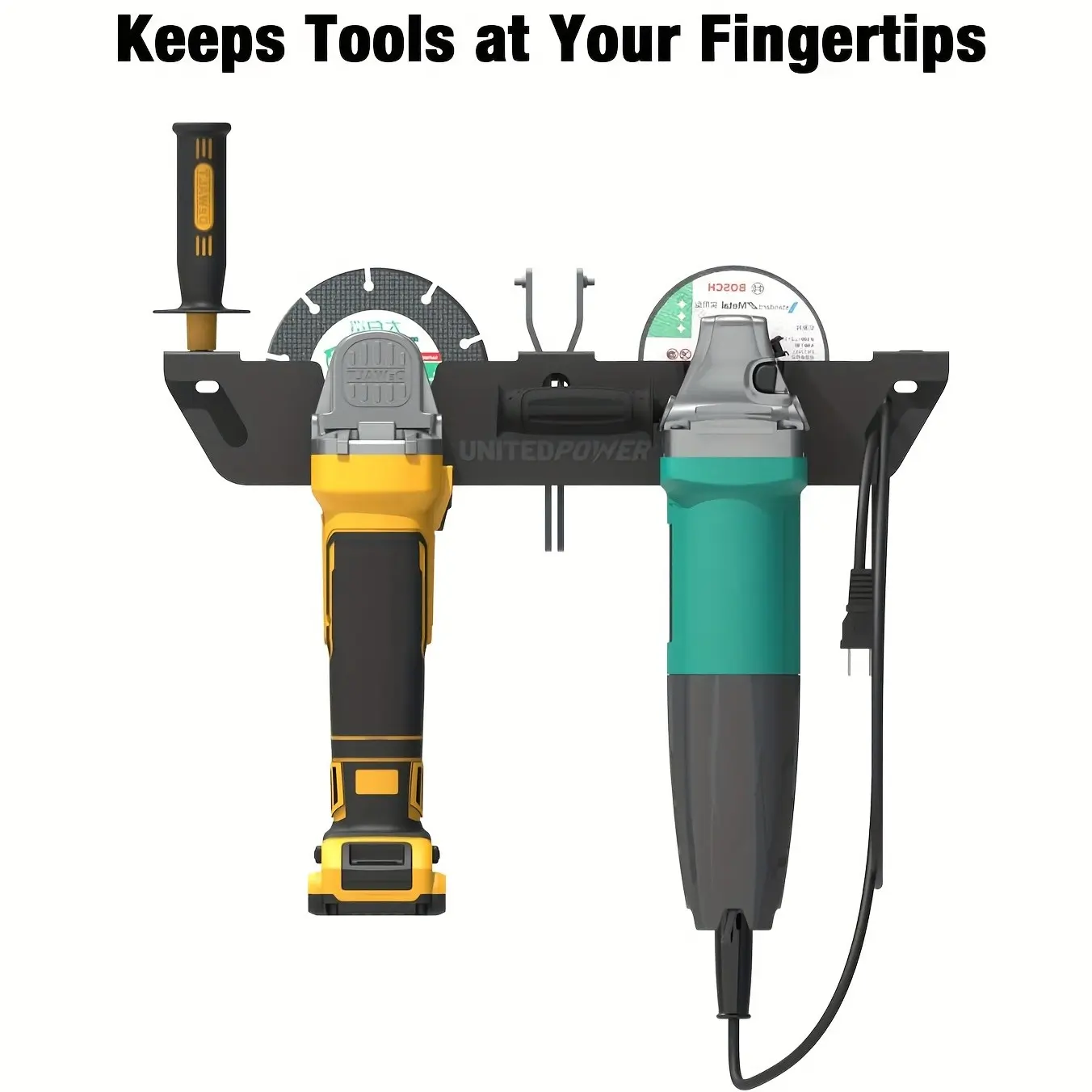 Angle Grinder Holder, 1 Bay Angle Grinder Rack/stand with Cord Hanger, Wall Mount Bracket for Cutters Polishers, Garage and Workspace Storage