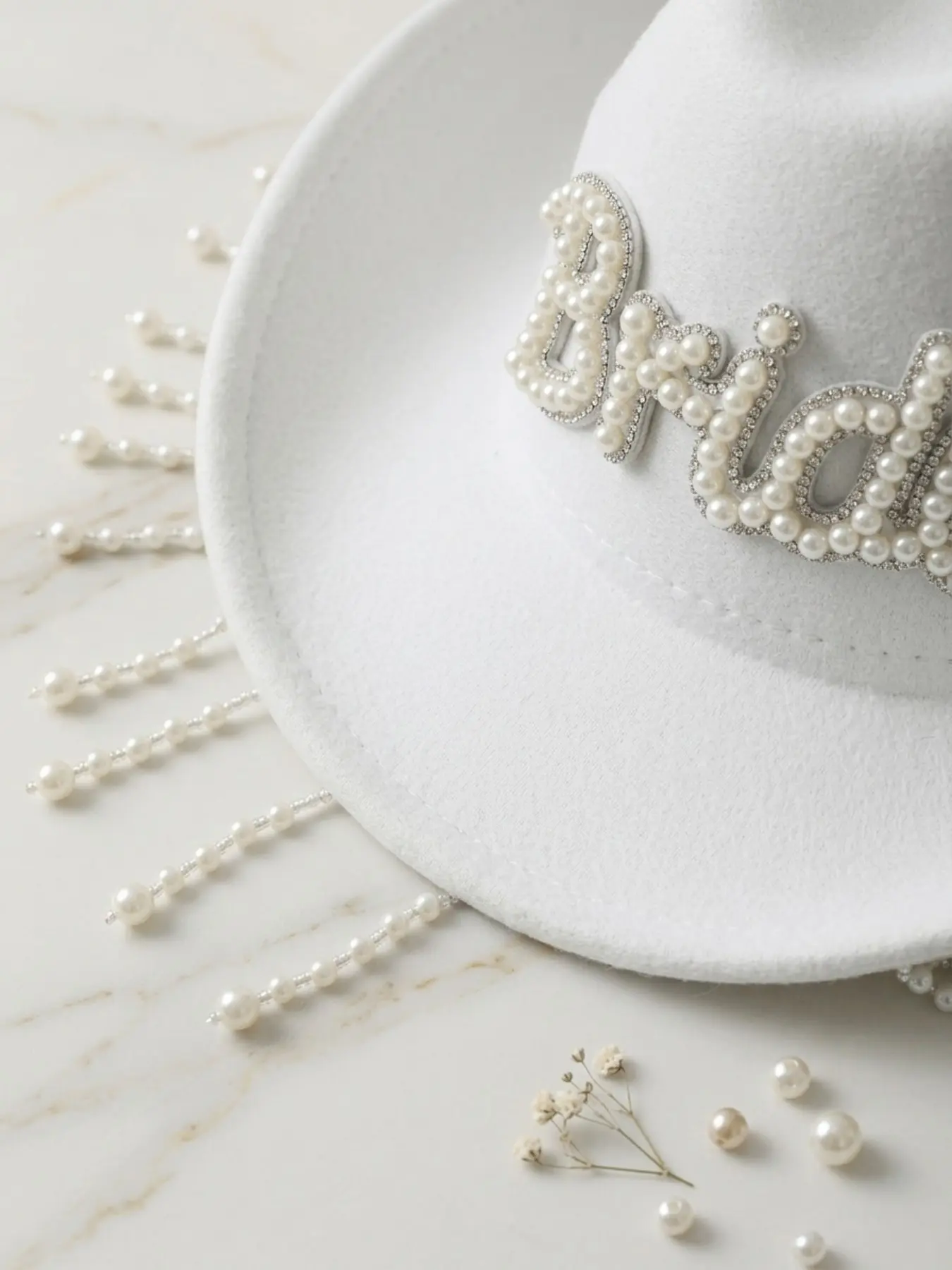 Pearl Fringe Bridal Cowboy Hat, Essential for Bachelorette Party Photos, Bride Letter Decoration, Western Style Wedding Accessory