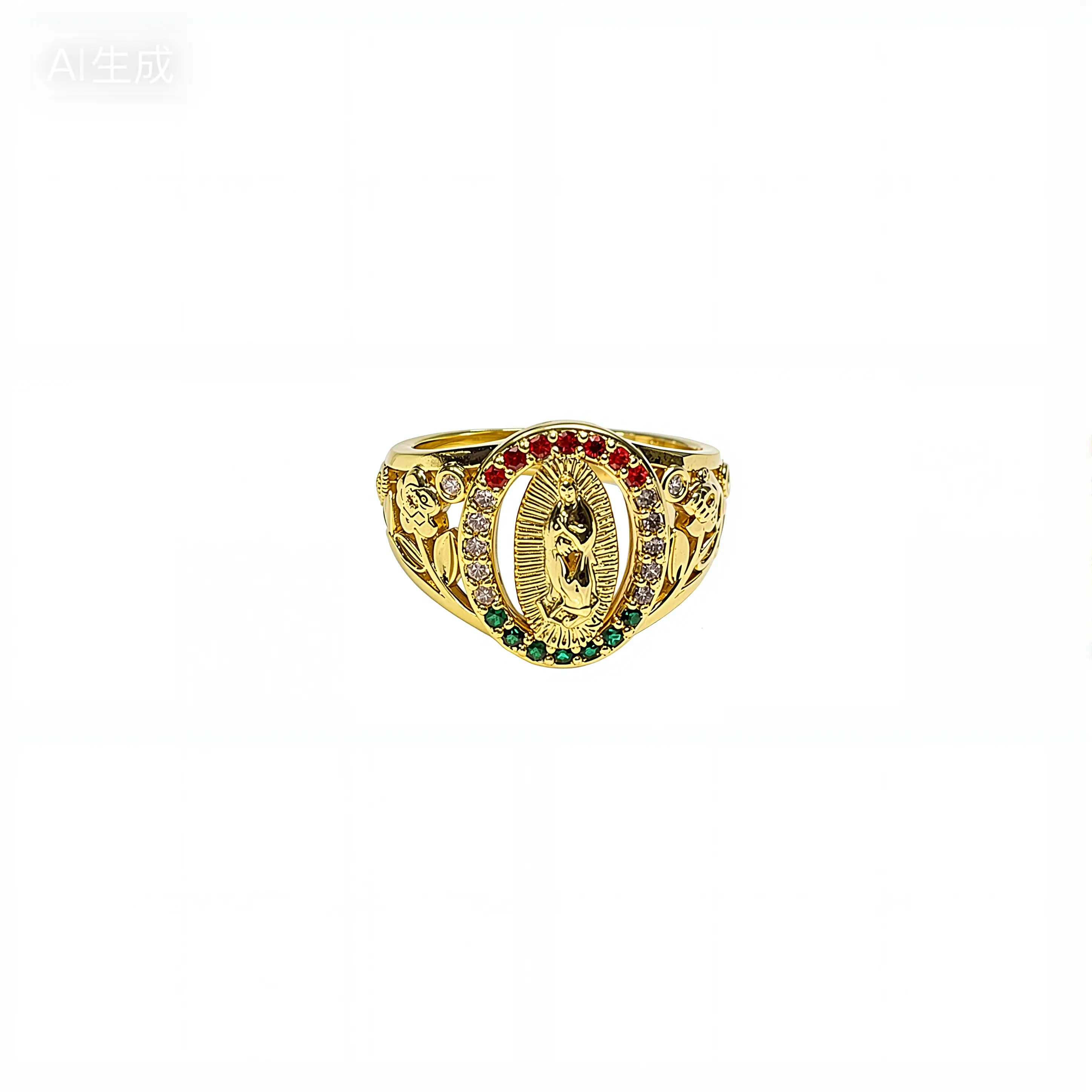 2. Inlaid with green, white and red lab-grown zircon stones, bright and sparkling, enhancing the ring's luxurious texture.