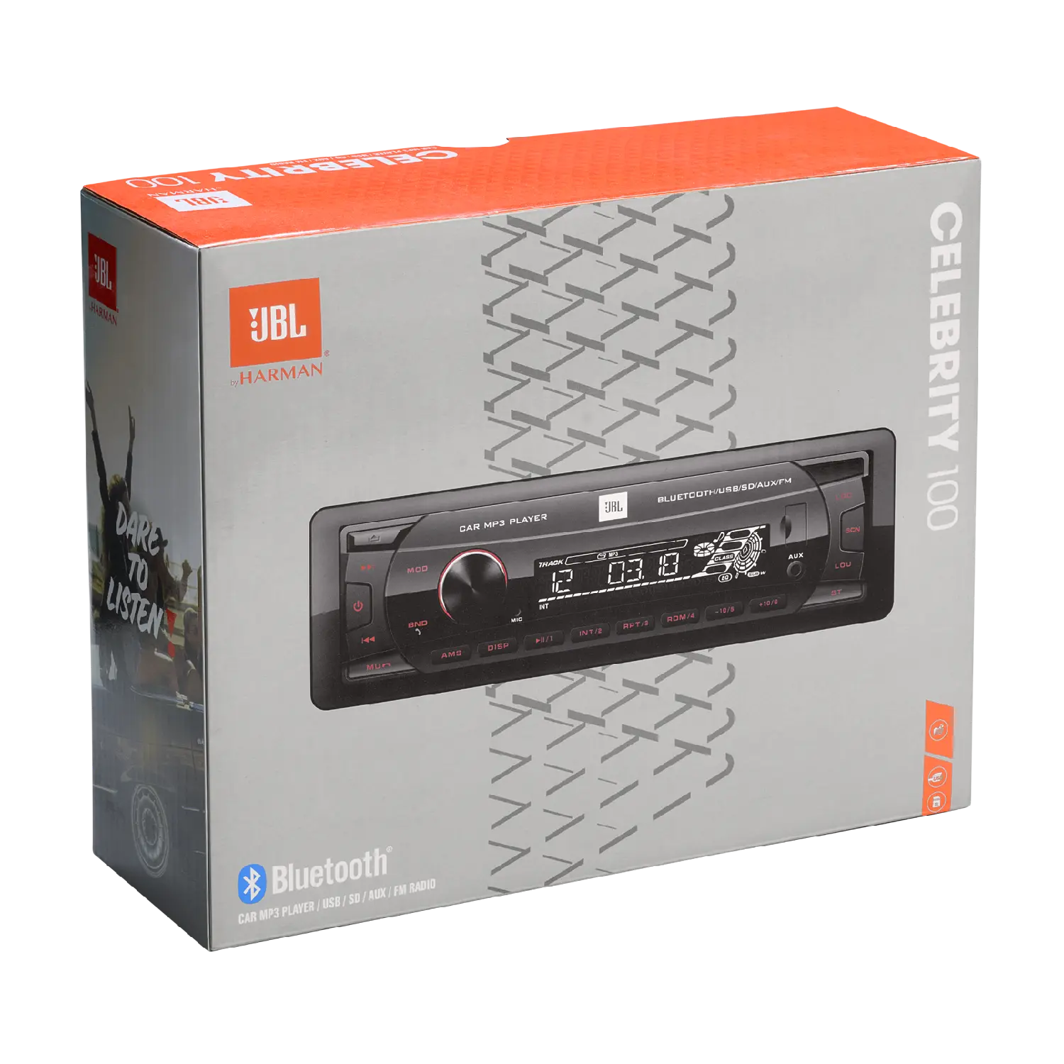 JBL Celebrity 100 Headunit is Single-Din, Mechless Car MP3 player with Detachable face, perfect to fit JBL speaker products as a bundled audio system. Multiple playback options like Bluetooth, USB input, Auxiliary input, SD Card, and FM Radio allows you choose freely for your favorite listening source.