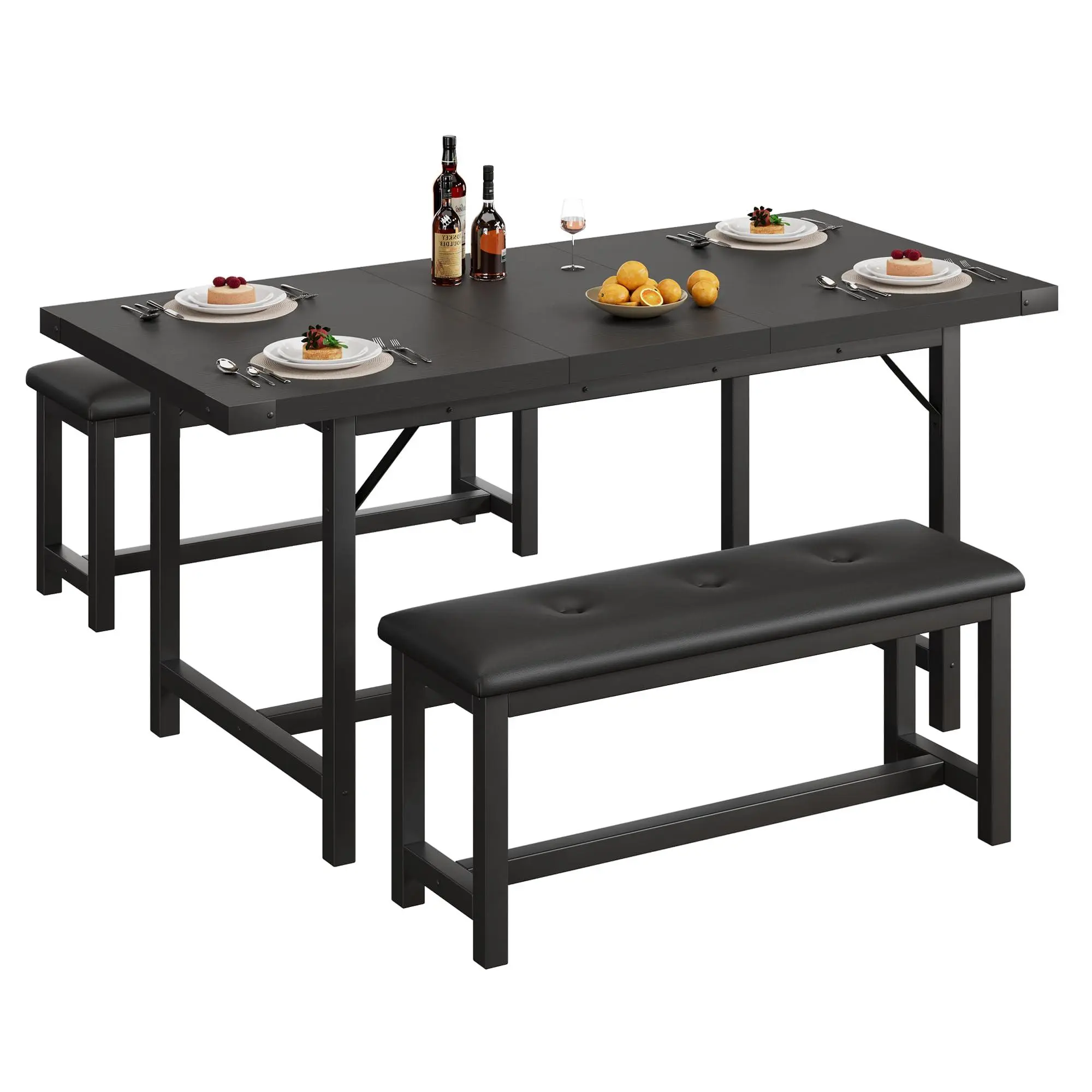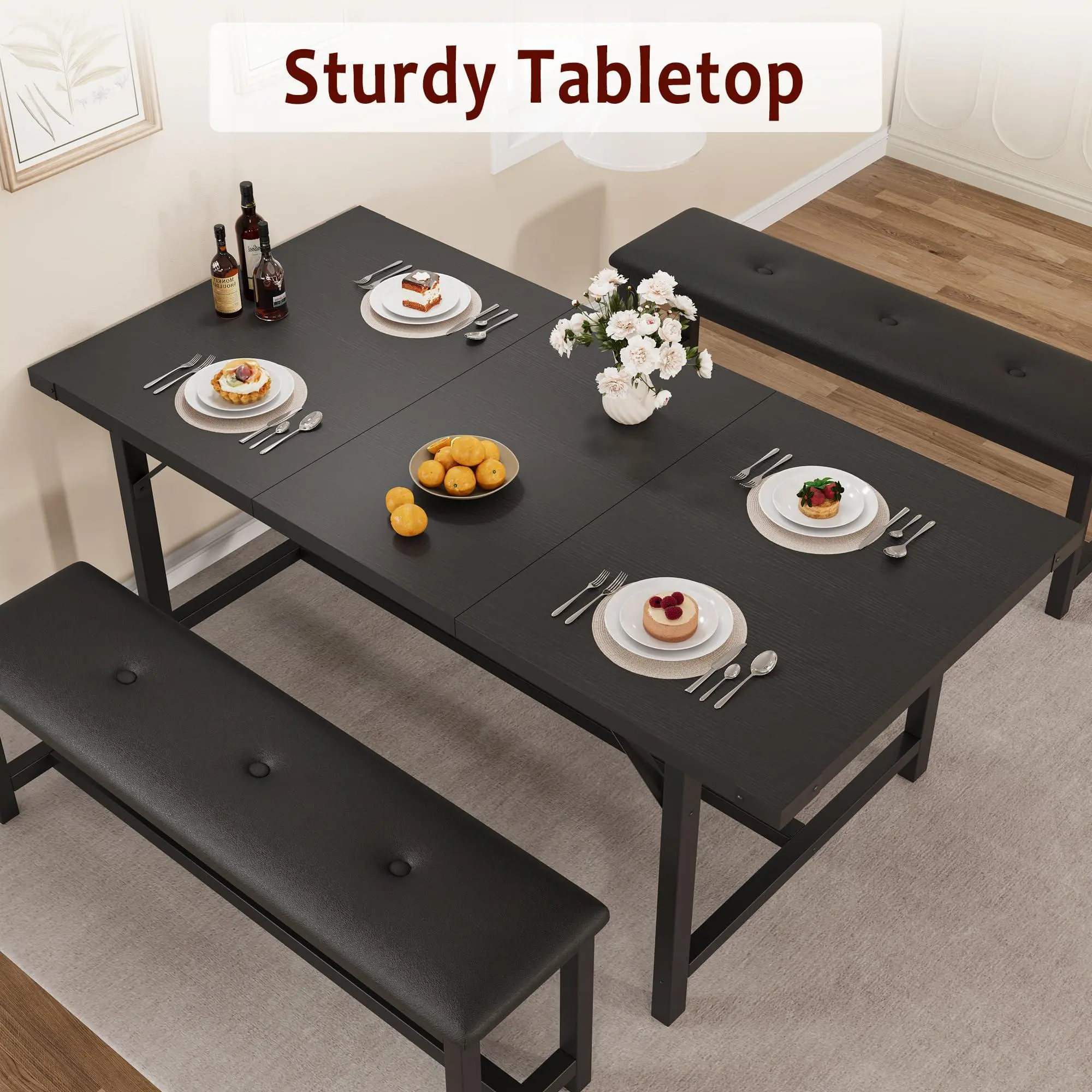 3. Effortless Comfort and Care: Enjoy a dining experience that’s both comfortable and hassle-free. The MDF tabletop offers a smooth, easy-to-clean surface, and the benches’ upgraded cushions provide exceptional comfort. Iron corner protectors on the table and benches prevent damage from accidental bumps, making this extendable dining table and two upholstered benches a durable and stylish choice for any home