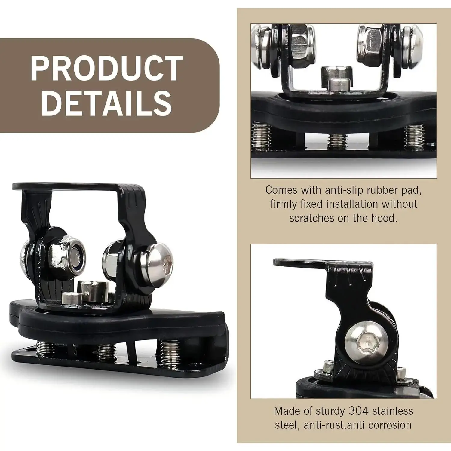 Easy Installation: This bracket is well designed and the installation process is simple and quick. You only need to attach it to the grille or hood of your car to fix it, no complicated operation or use of additional tools are required.