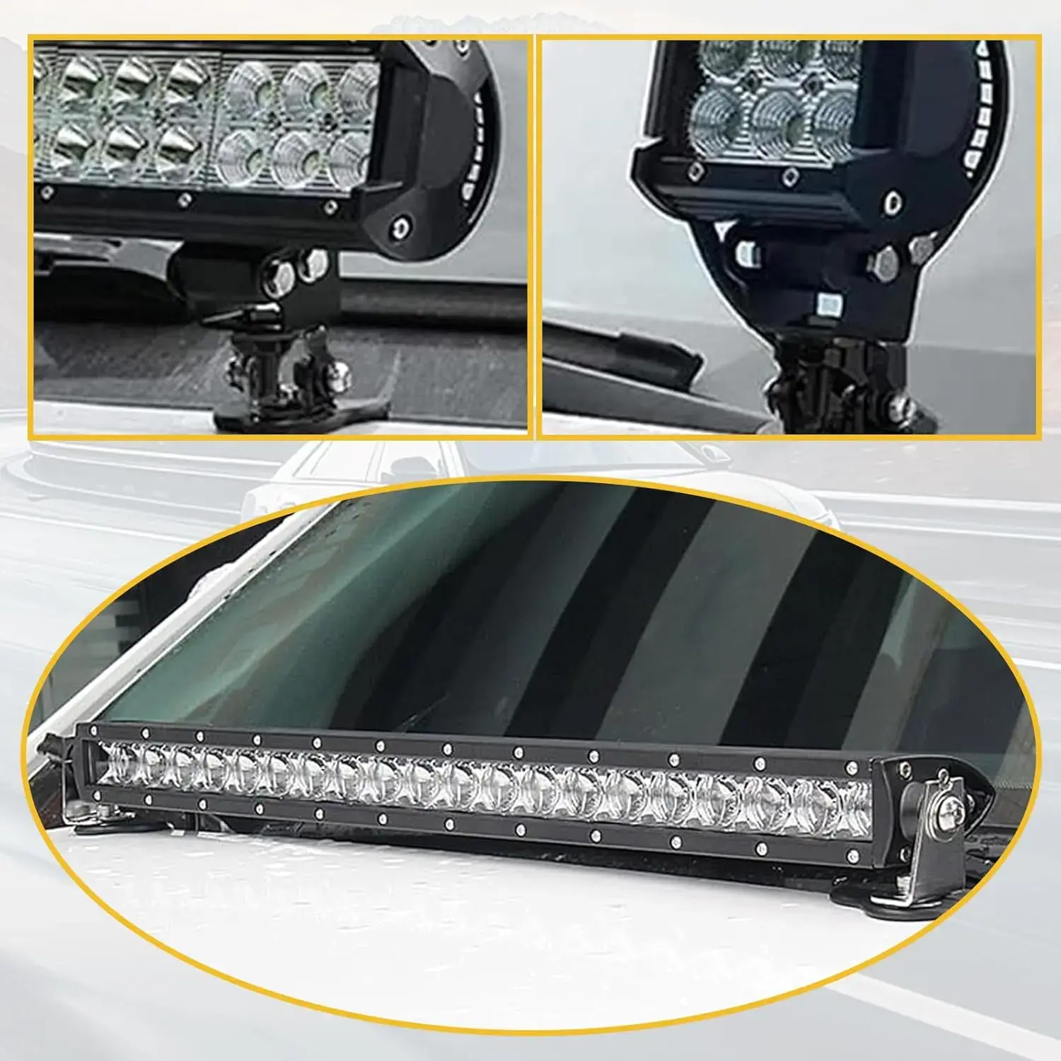Rubber Shock-absorbing Base: This mounting bracket is equipped with a rubber shock-absorbing base wrapped around the bottom, which can effectively reduce the impact of vibration and collision on the LED light during car driving and protect the LED light strip from damage.
