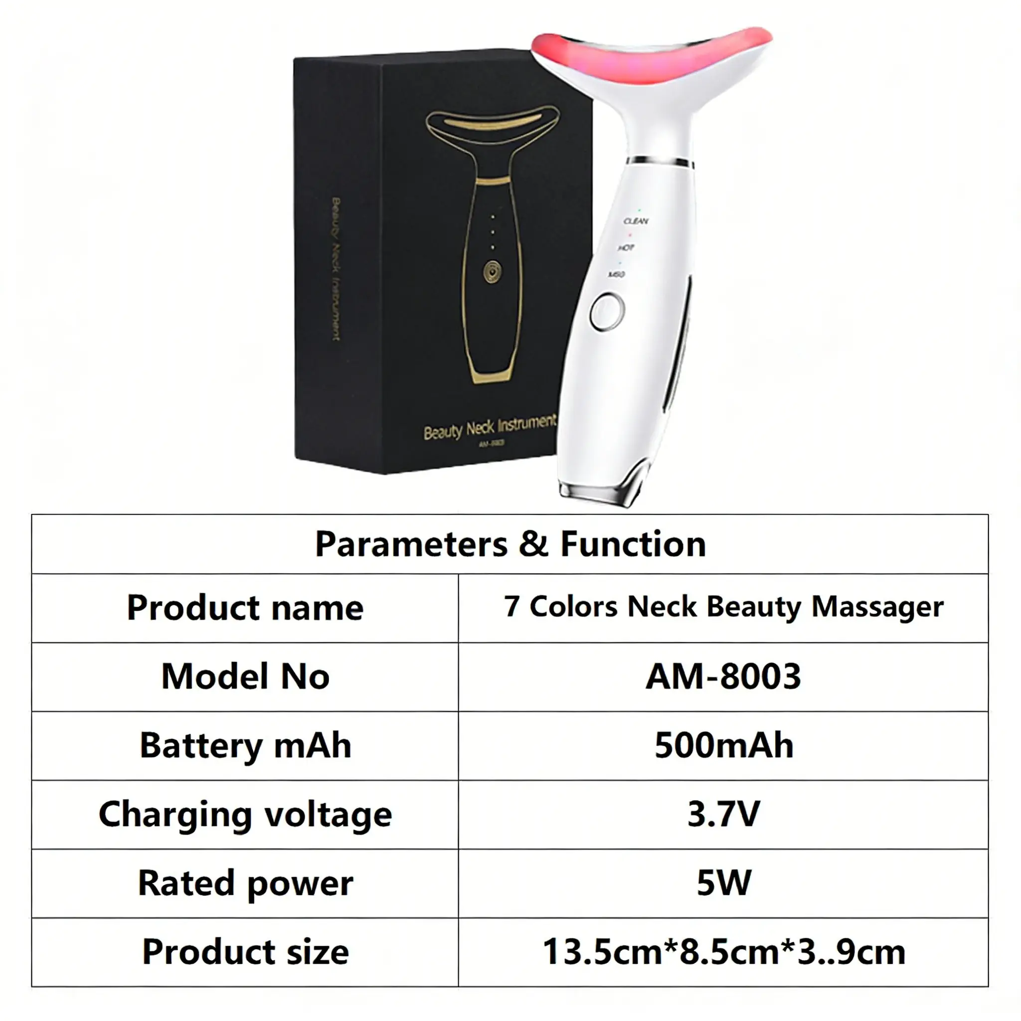 7 Colors LED Face & Neck Beauty Massager with 3 Modes (Vibration + Heating), Rechargeable Home Skin Care Tool, Thoughtful Christmas & Halloween Gift for Girls