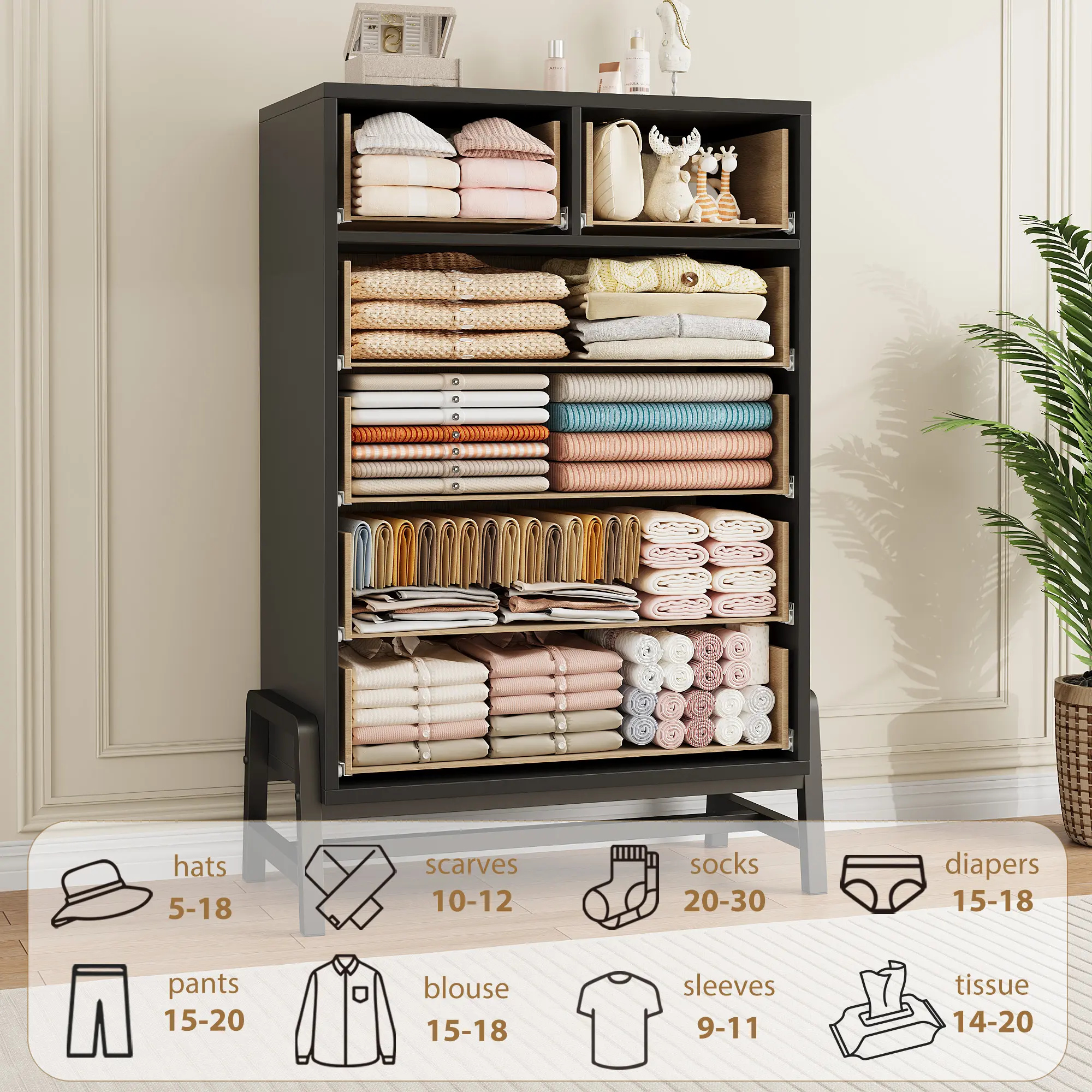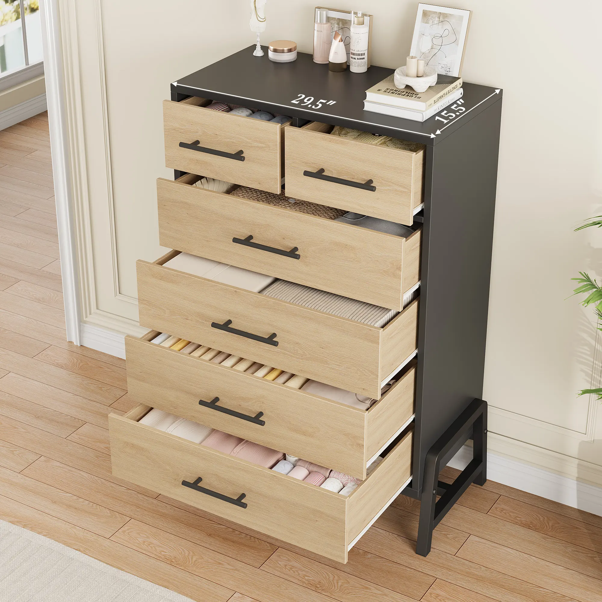 ·Generous Storage: Features six ultra-deep drawers—four full-width for clothing and linens, plus two half-width for accessories and basics. Each drawer glides smoothly for easy access and helps keep your space neat and organized.