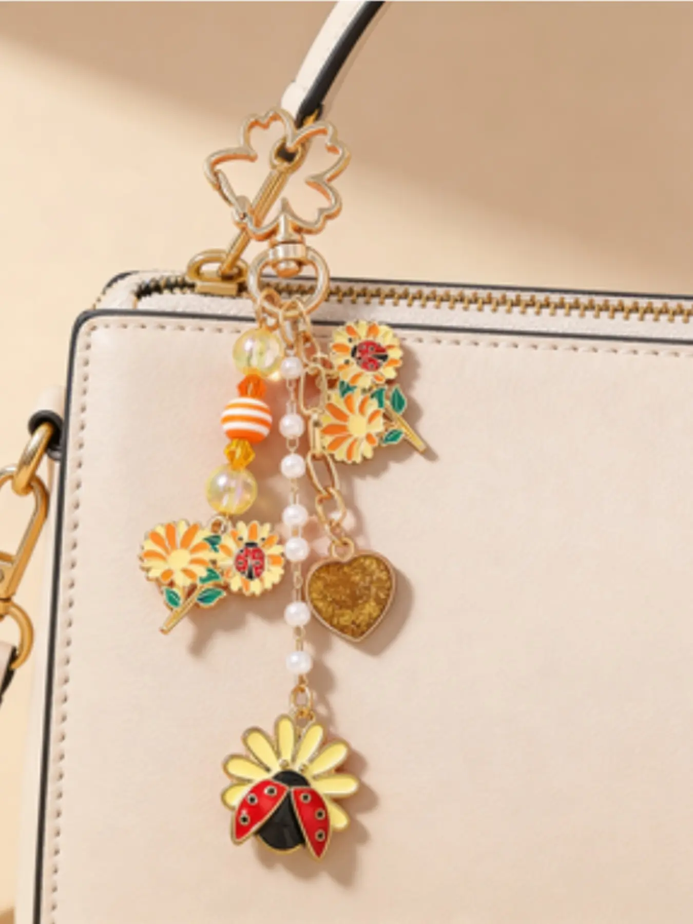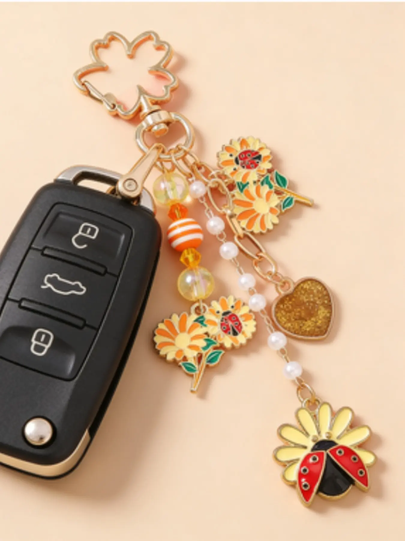 Enamel Floral Pattern Keychain, Butterfly Heart Daisy Pendant, Key Ring Decor, Car Backpack Handbag Accessory Gift