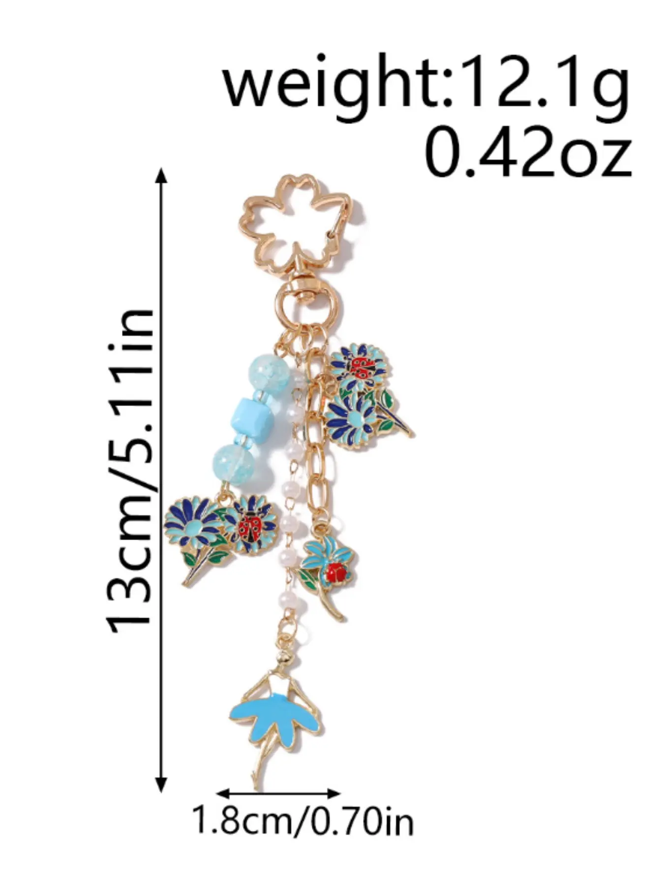 【Floral Enamel】: Features intricate floral enamel patterns, adding a unique and vibrant touch to your keychain.